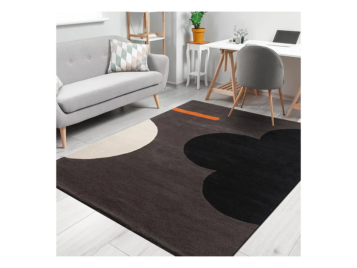 tapis entrée 120x180 fait à la main en laine noir et gris motif seventies