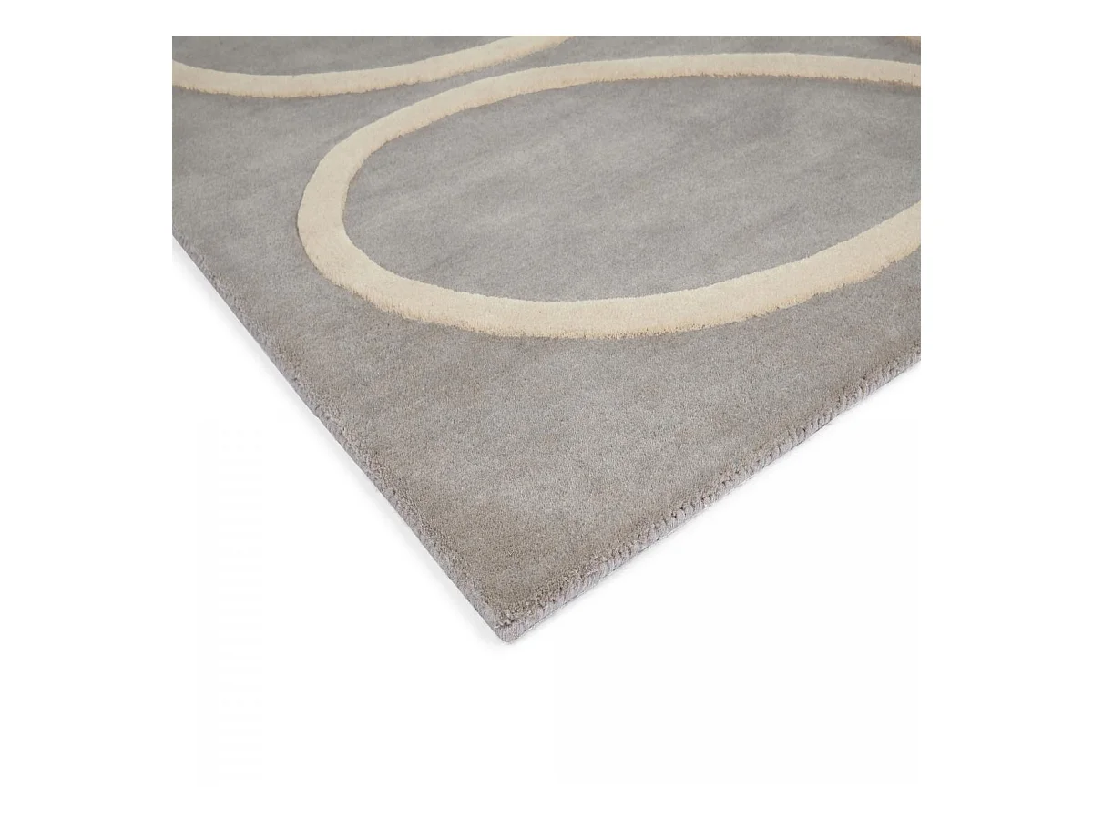 tapis salon 200x280 fait à la main en laine gris et crème motif seventies