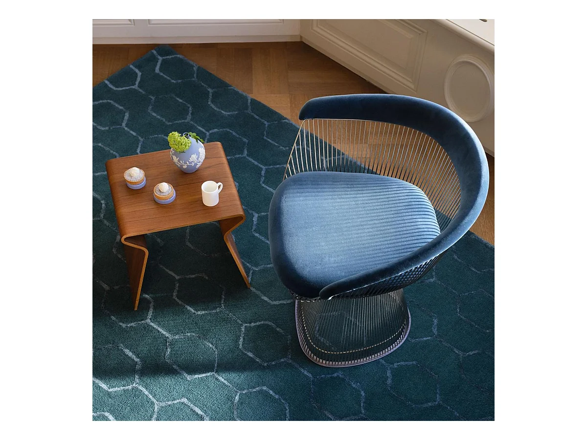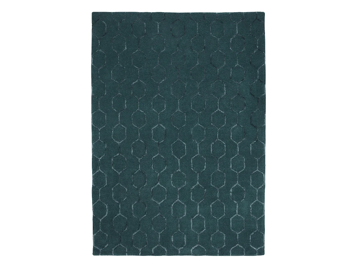 tapis salle à manger 250x350 fait à la main en laine bleu nuit motif faux uni
