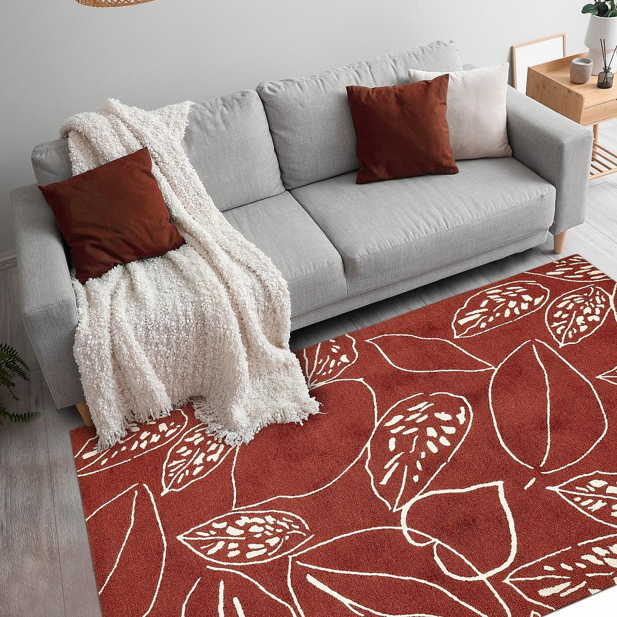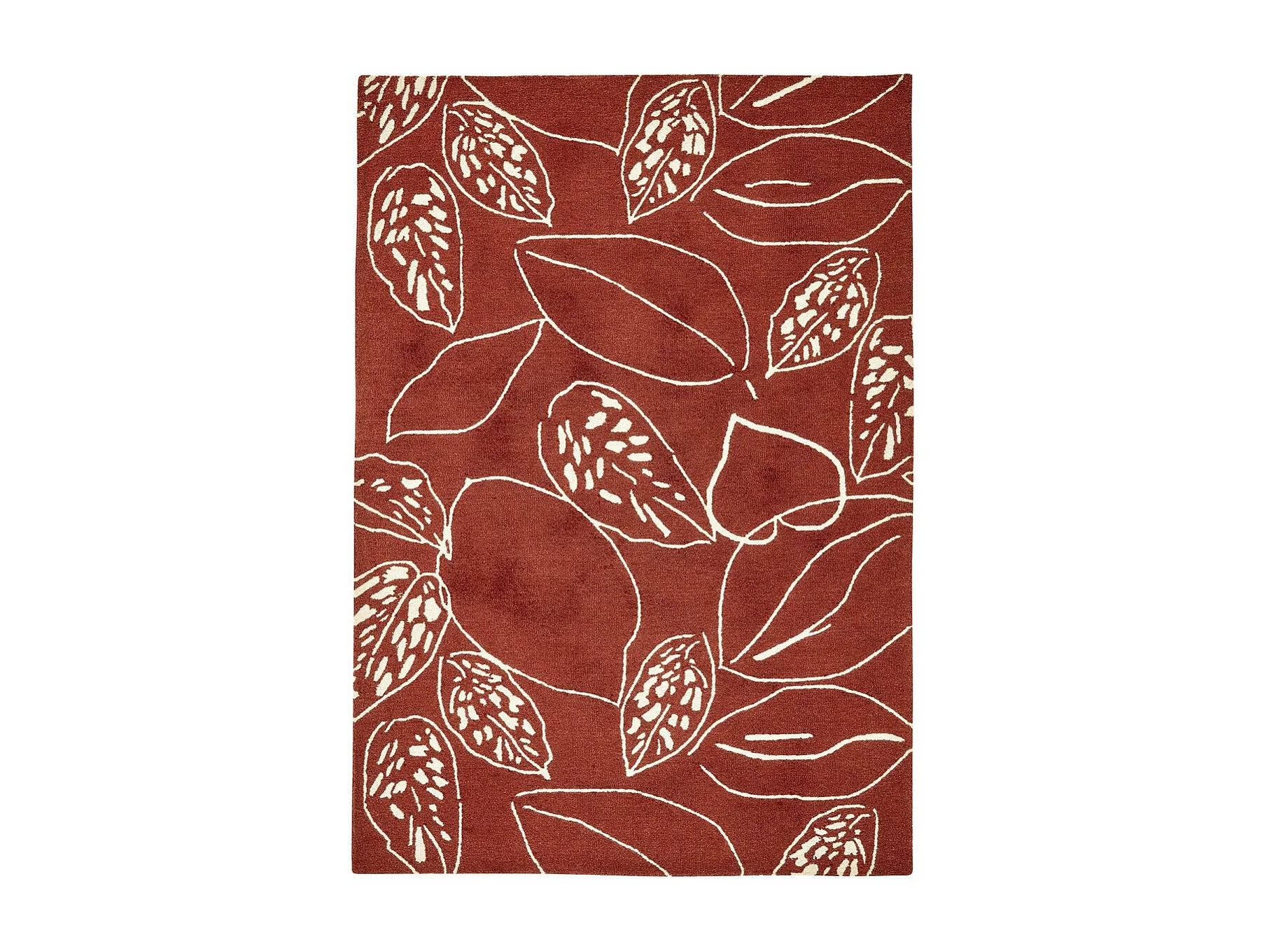 tapis grand salon 250x350 fait à la main en laine rouge et crème motif floral