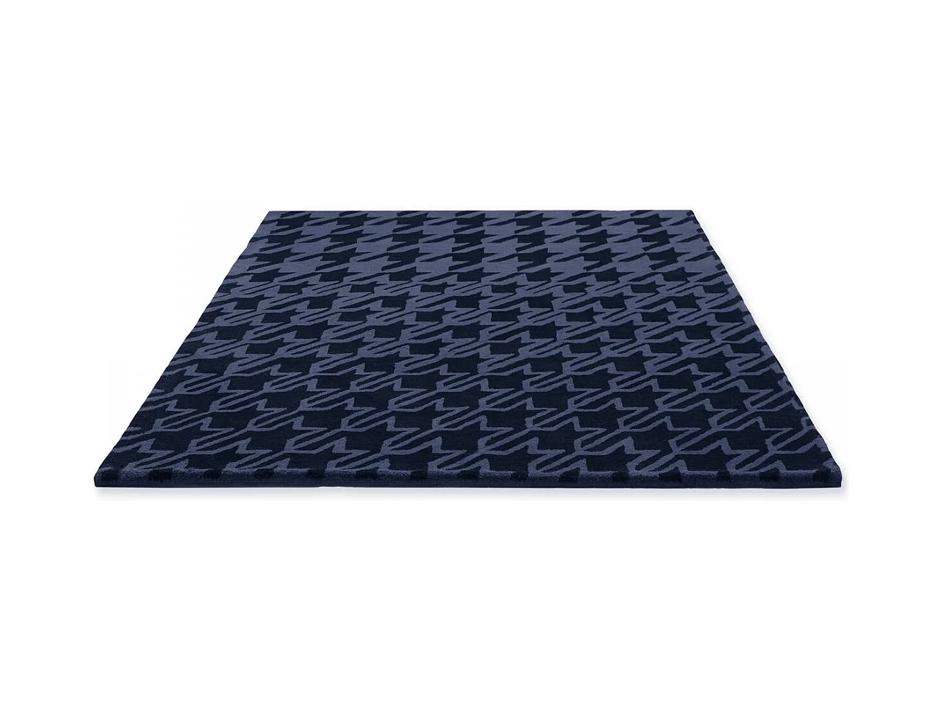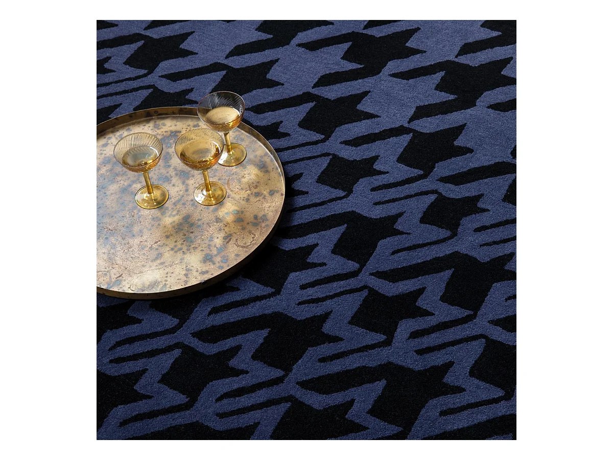 tapis entrée 140x200 fait à la main en laine bleu foncé motif géométrique