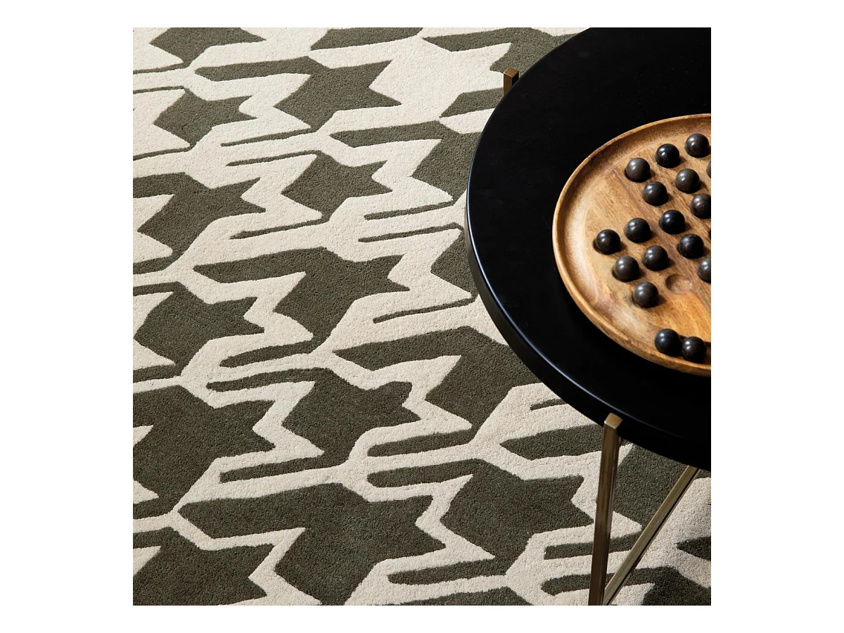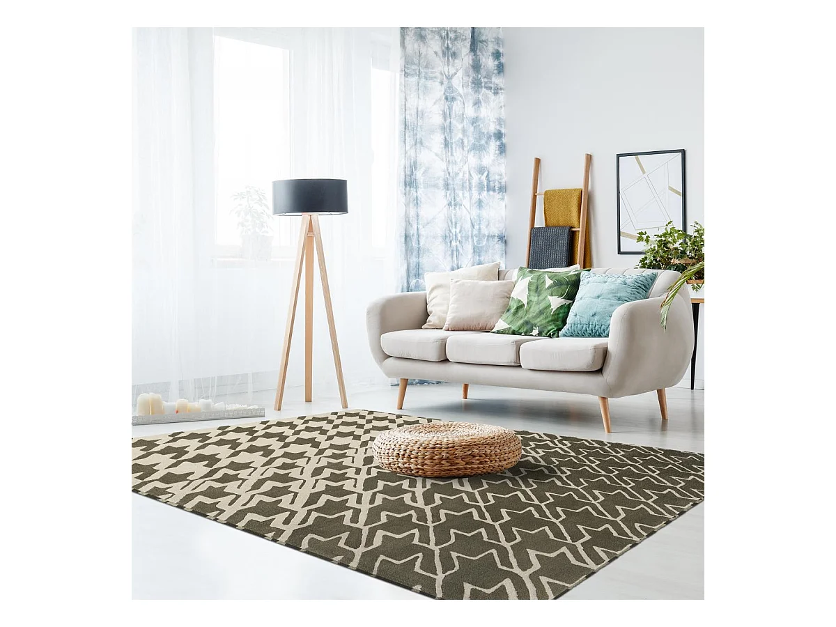 tapis chambre 170x240 fait à la main en laine gris rectangle motif géométrique