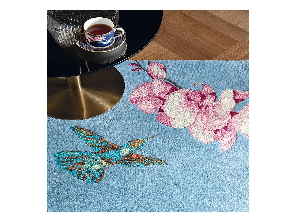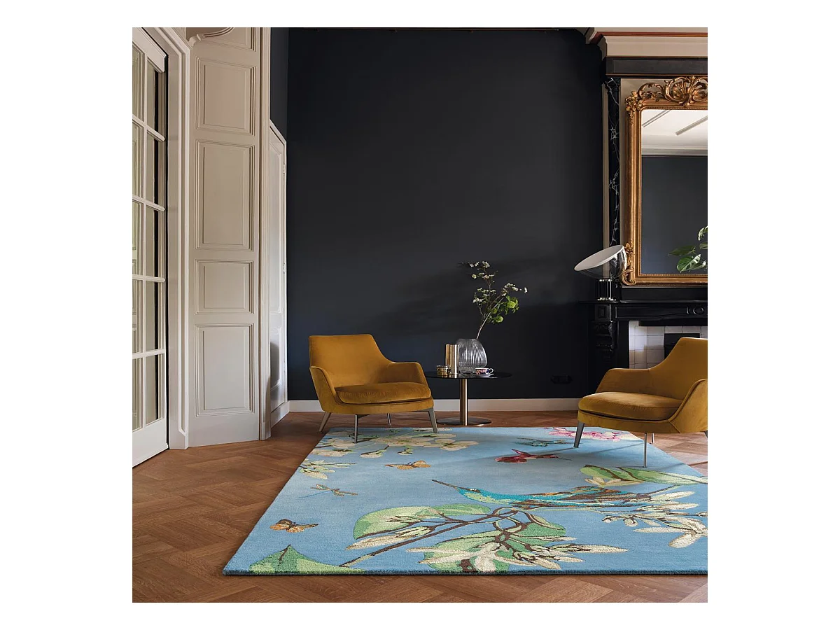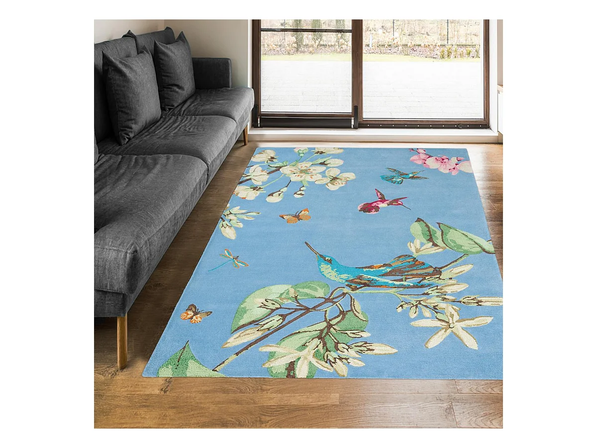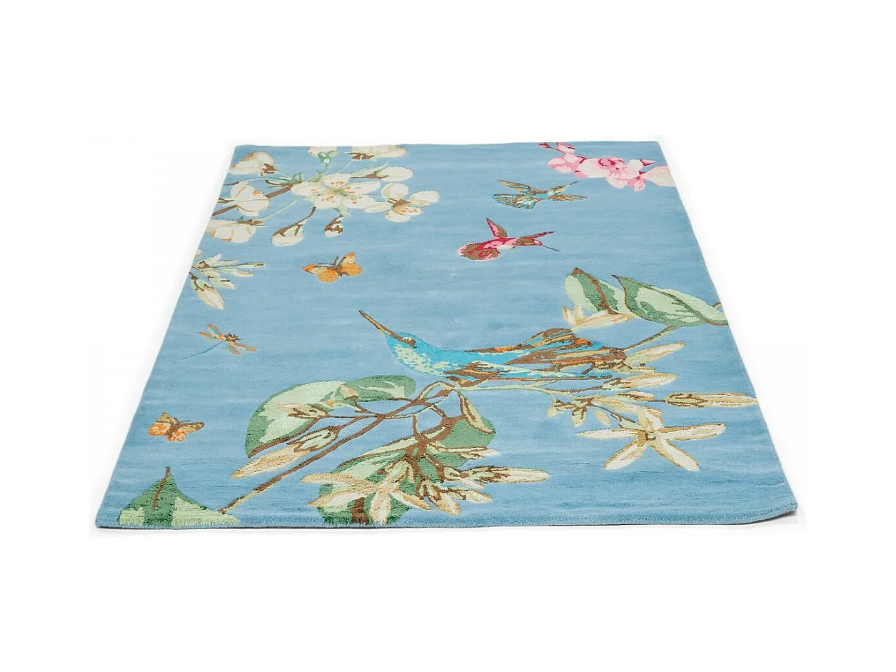 tapis salon 170x240 fait à la main en laine bleu et rouge motif floral