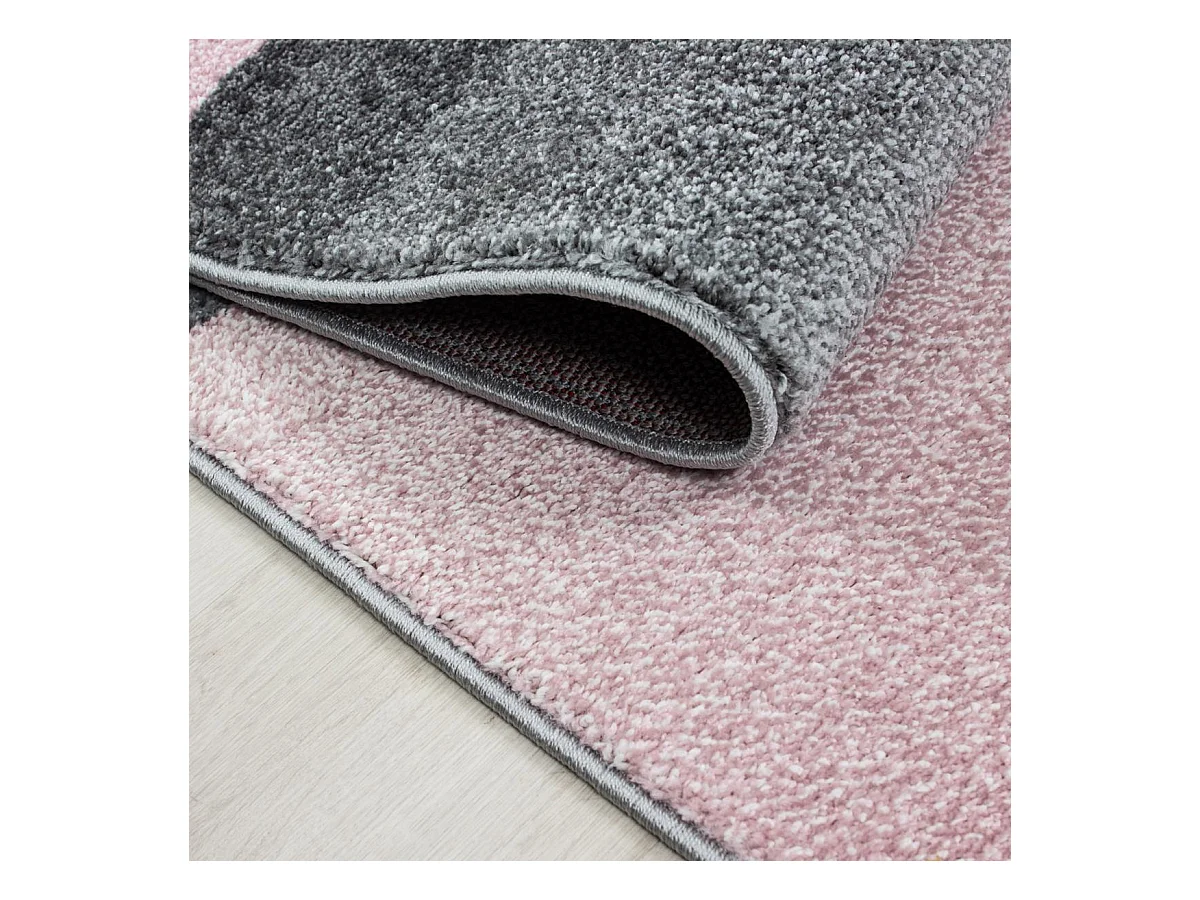 tapis salon 140x200 tissé rose et gris rectangle motif géométrique KARLUK