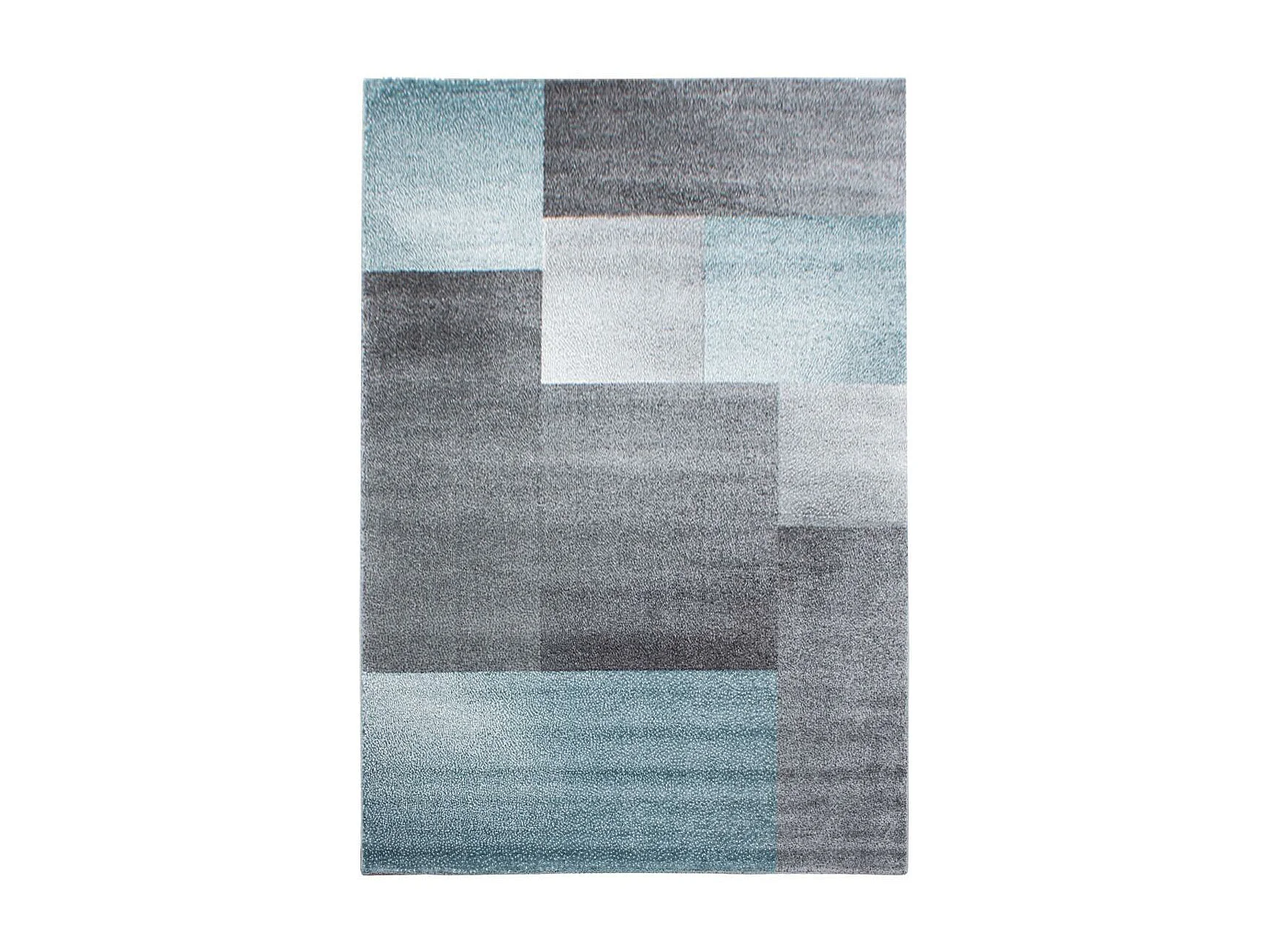 tapis grand salon 160x230 tissé bleu et gris rectangle motif géométrique KARLUK