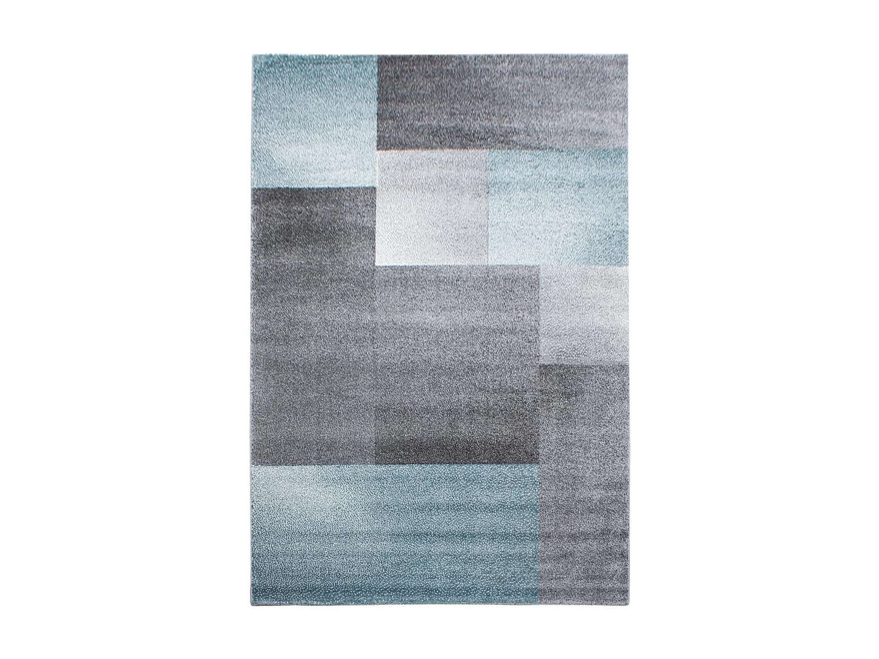 tapis entrée 80x150 tissé bleu et gris rectangle motif géométrique KARLUK