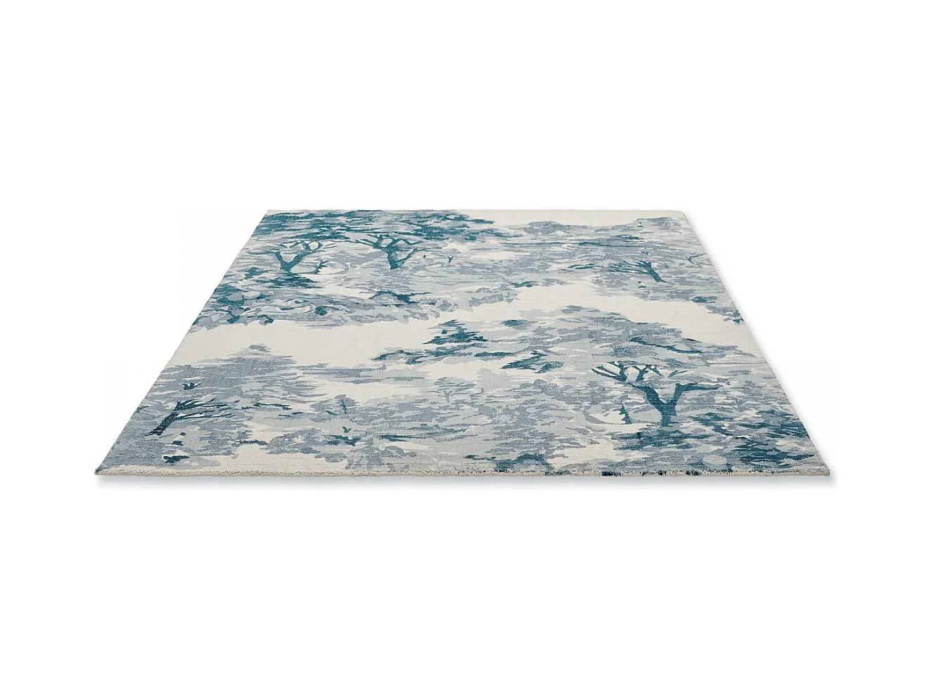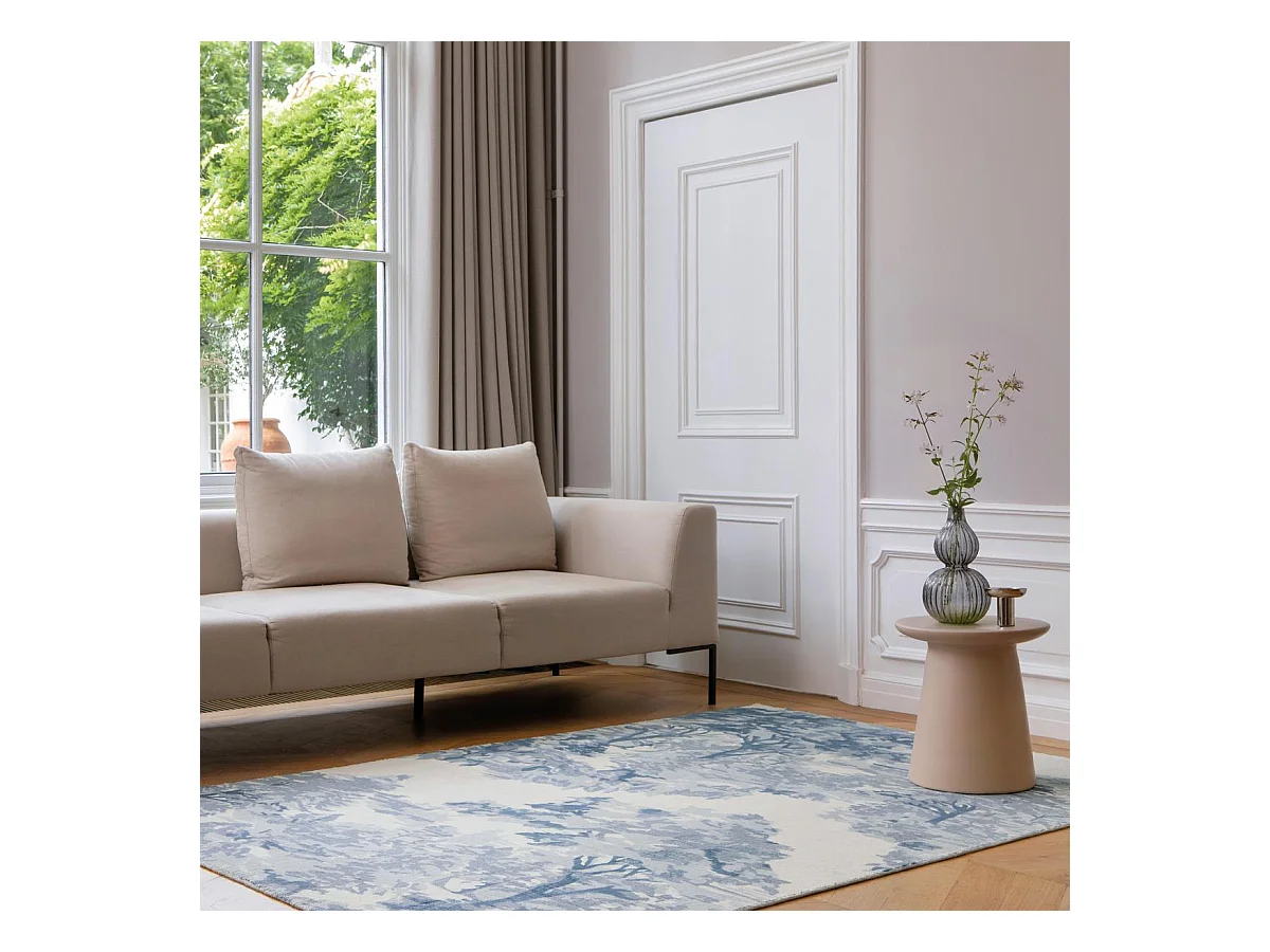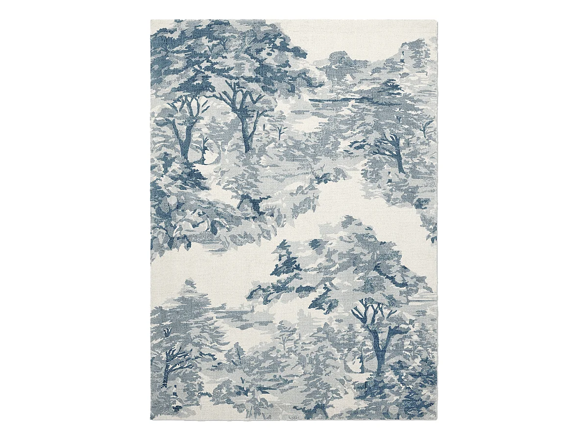 tapis entrée 140x200 fait à la main en coton bleu rectangle motif floral