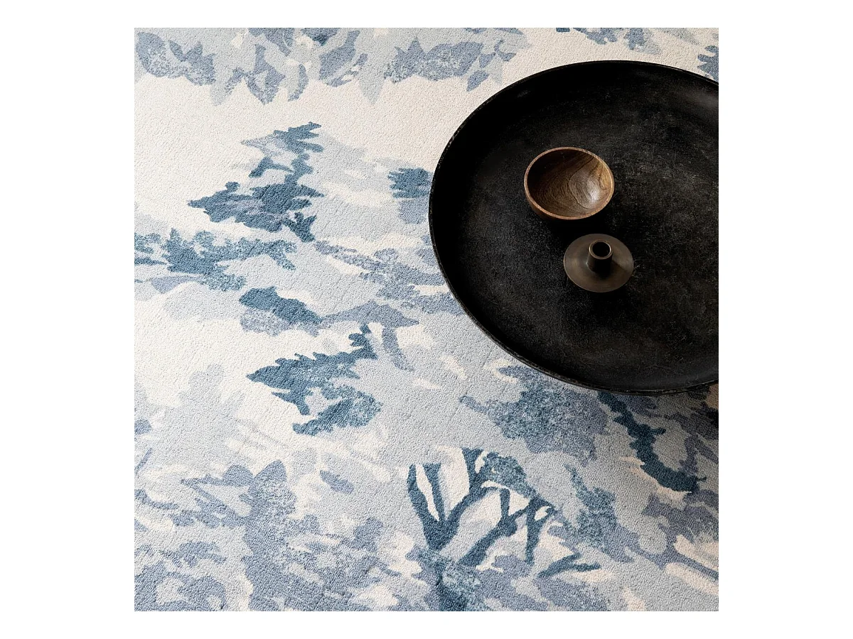 tapis chambre 200x280 fait à la main en coton bleu rectangle motif floral