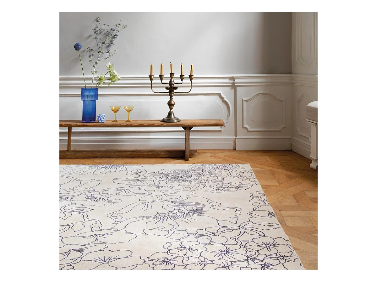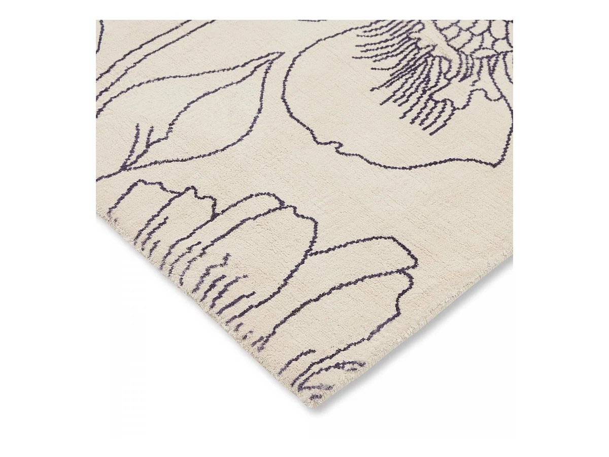 tapis chambre 170x240 fait à la main en coton crème rectangle motif floral LINEAR
