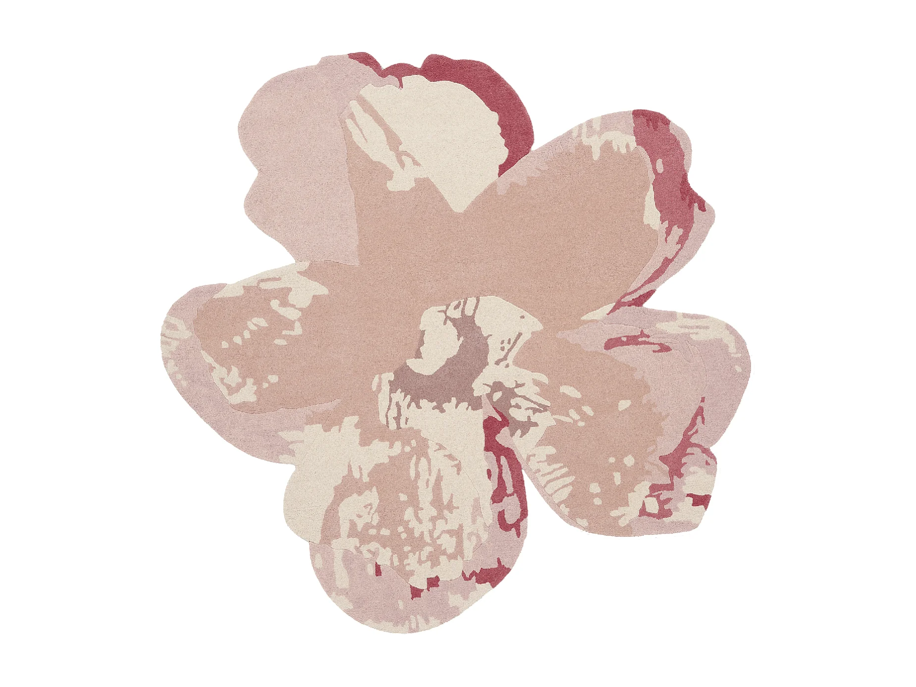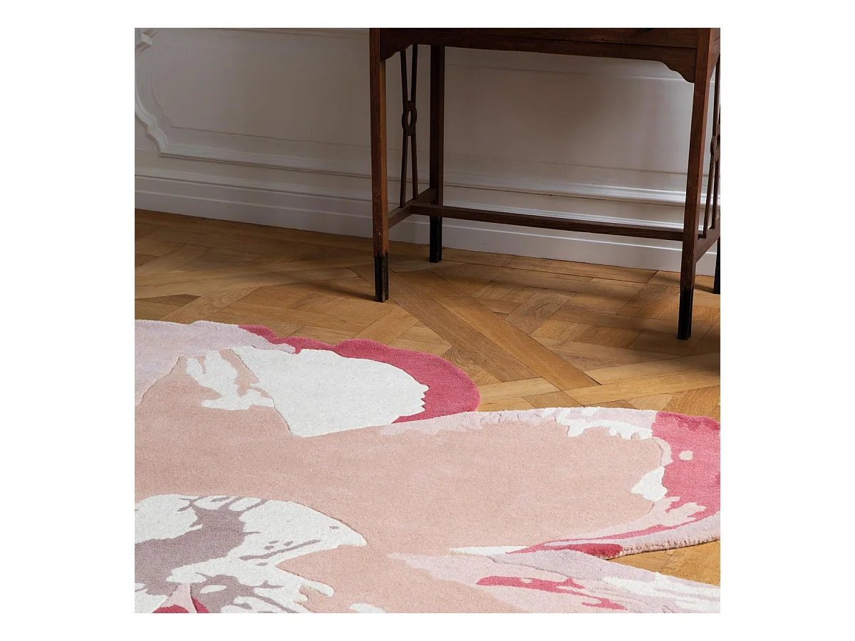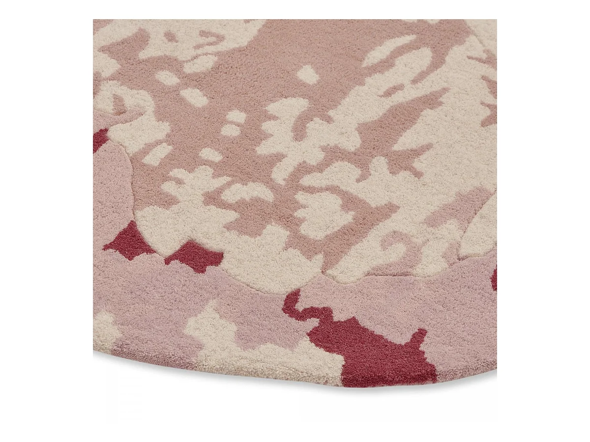 tapis salon 150x150 fait à la main en laine rose clair motif floral