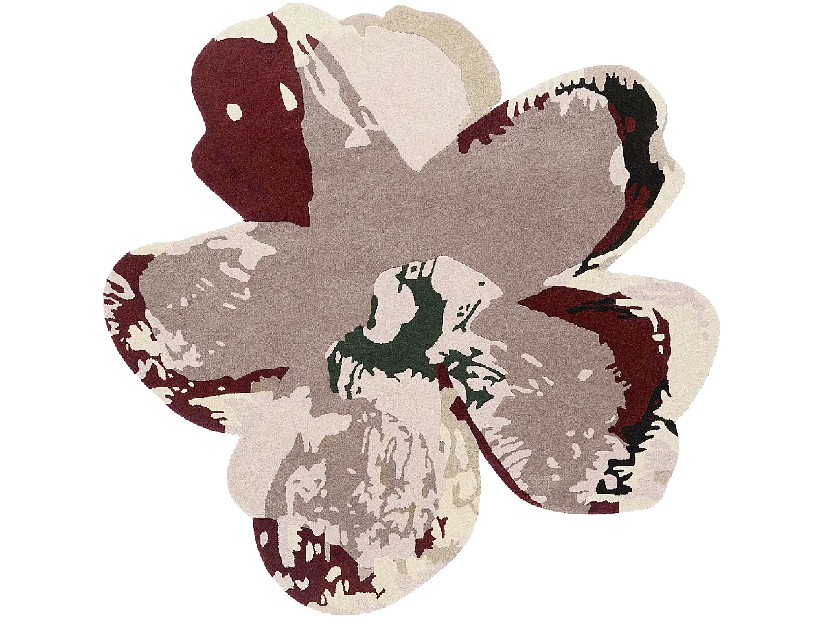 tapis chambre 200x200 fait à la main en laine rose clair et bordeaux
