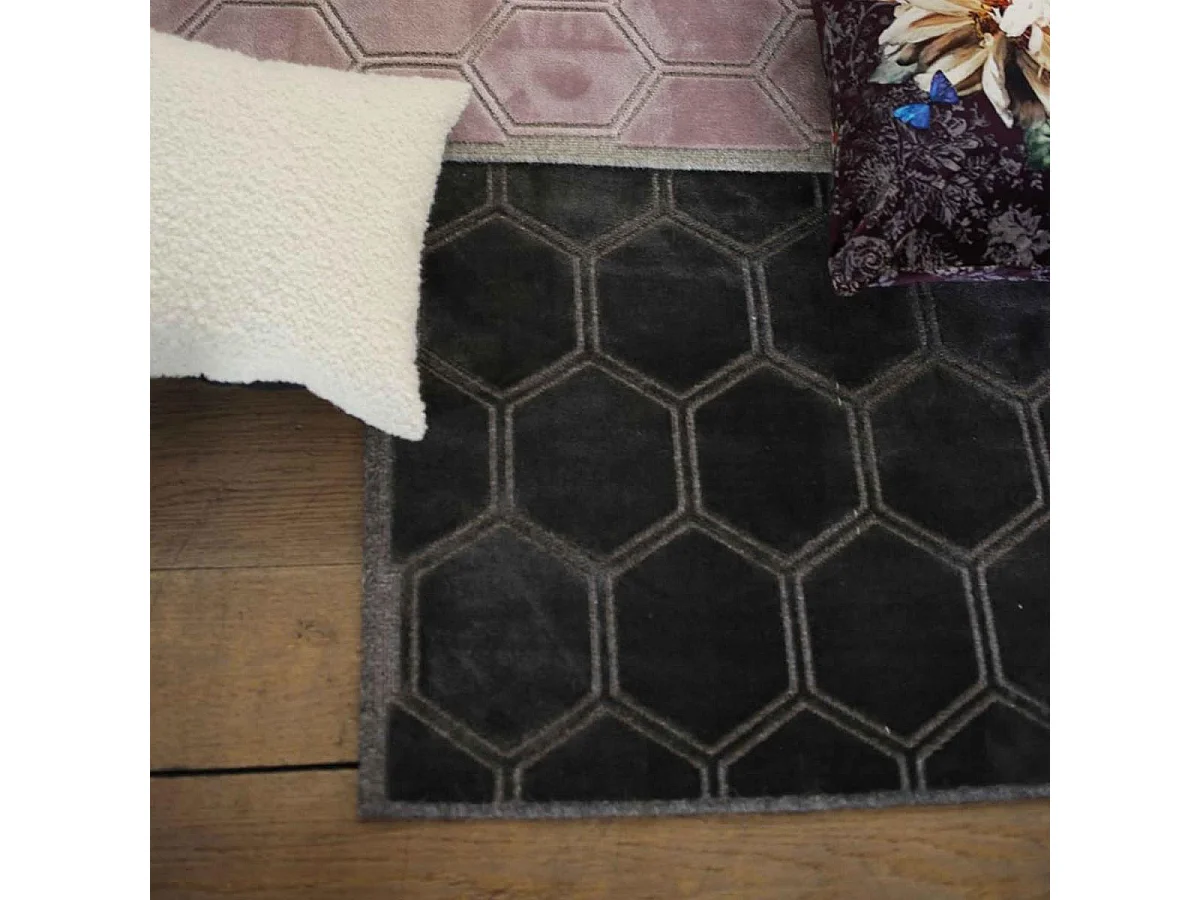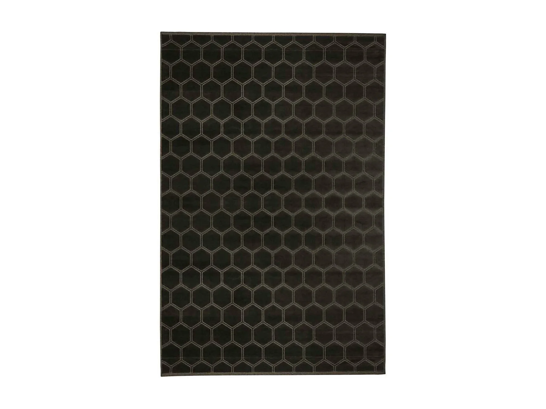 tapis salle à manger 240x340 fait à la main en viscose noir et blanc