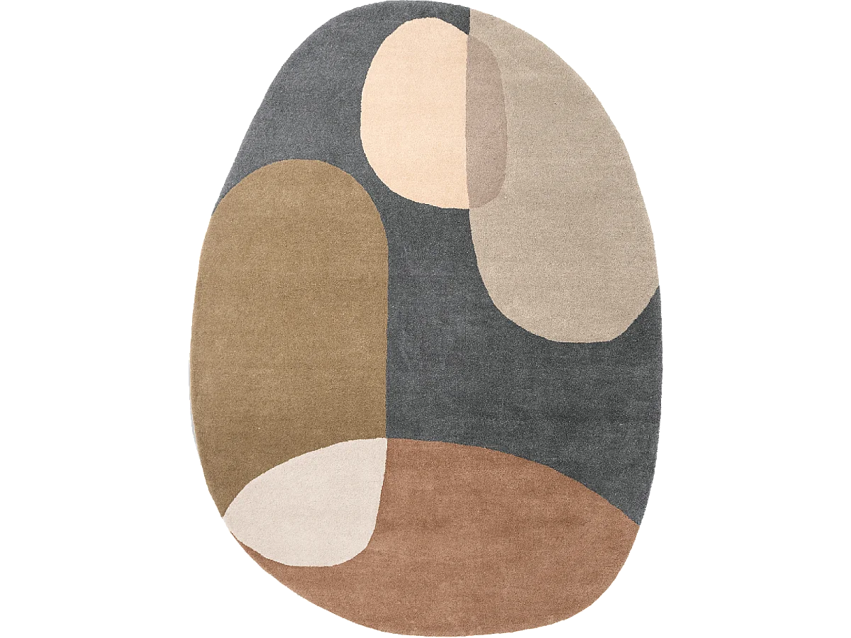 tapis couloir 140x200 fait à la main en laine bleu et vert ovale motif abstrait