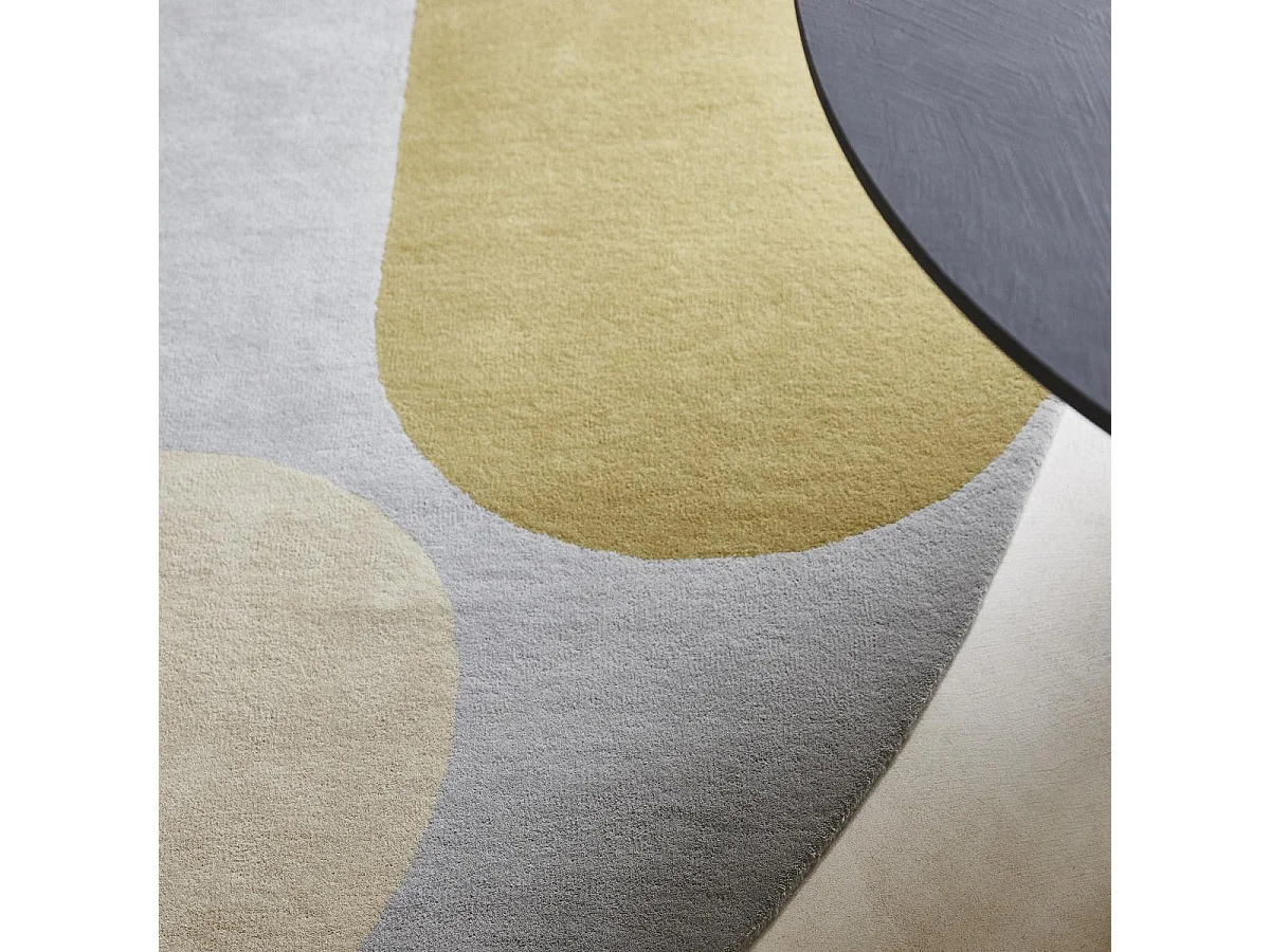 tapis open space 200x280 fait à la main en laine gris et vert motif abstrait