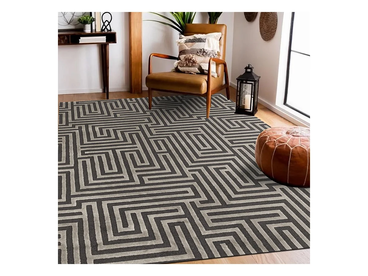 tapis chambre 160x230 tissé gris rectangle motif géométrique MIRAGE