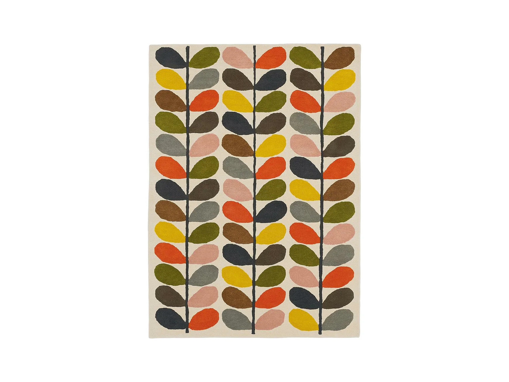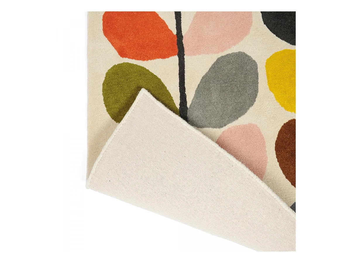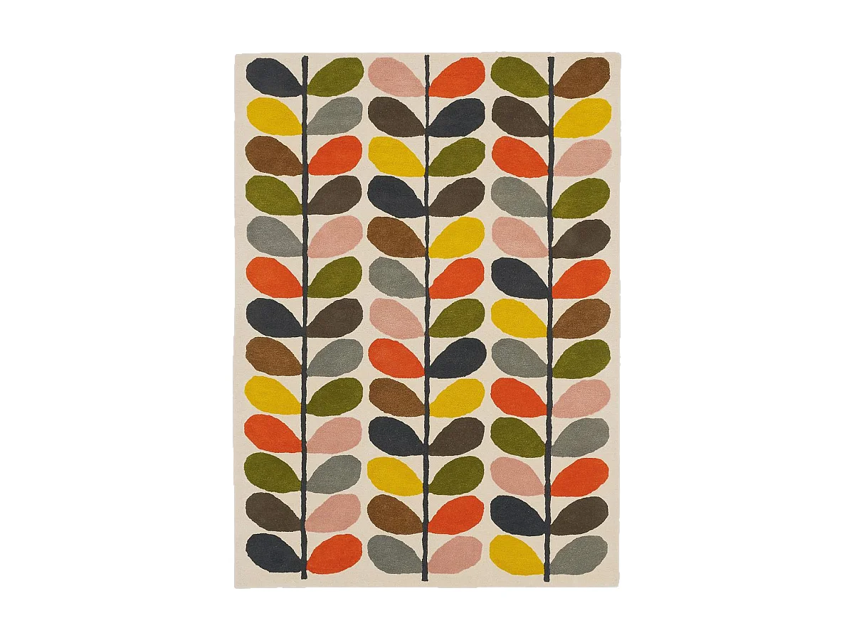 tapis entrée 120x180 fait à la main en laine crème et orange motif seventies