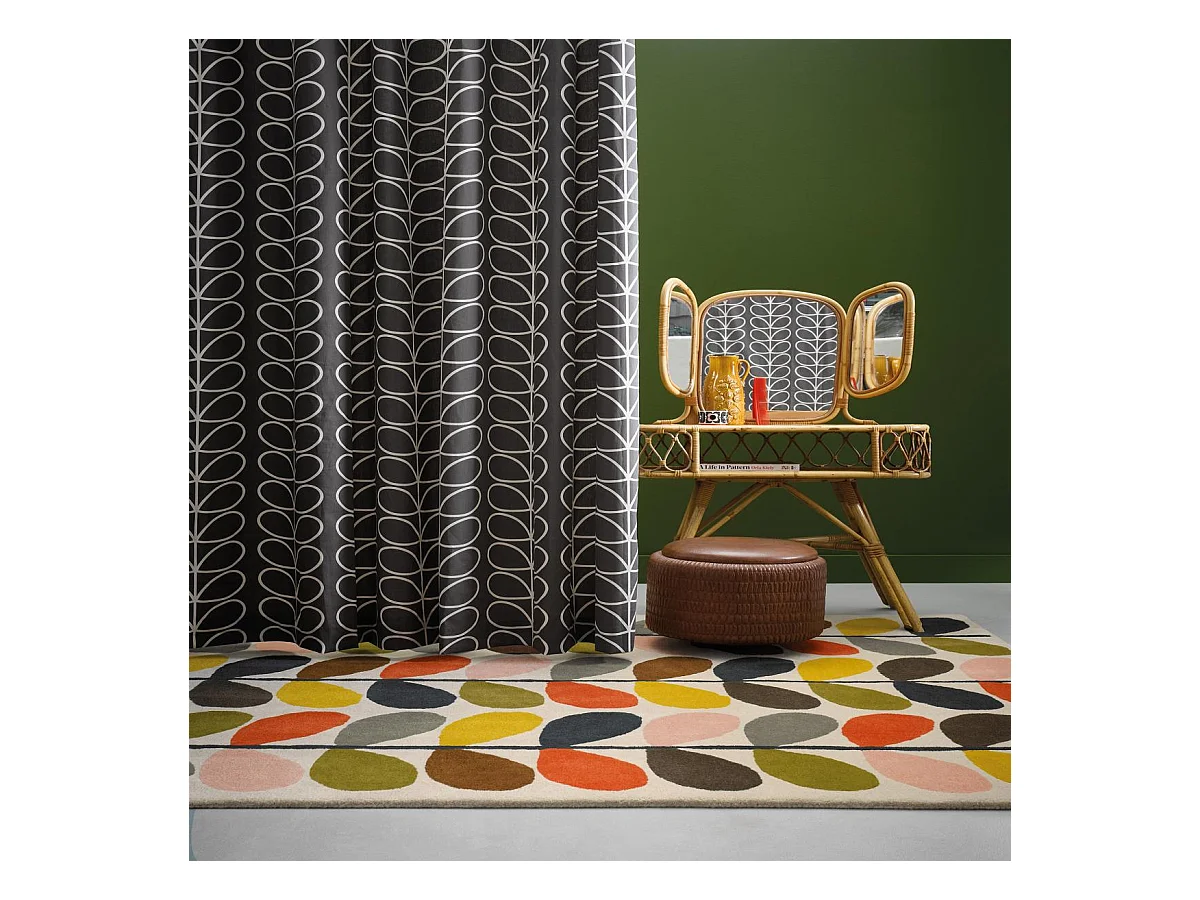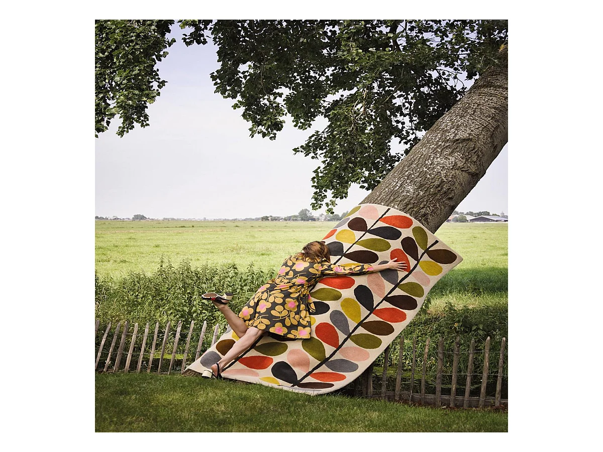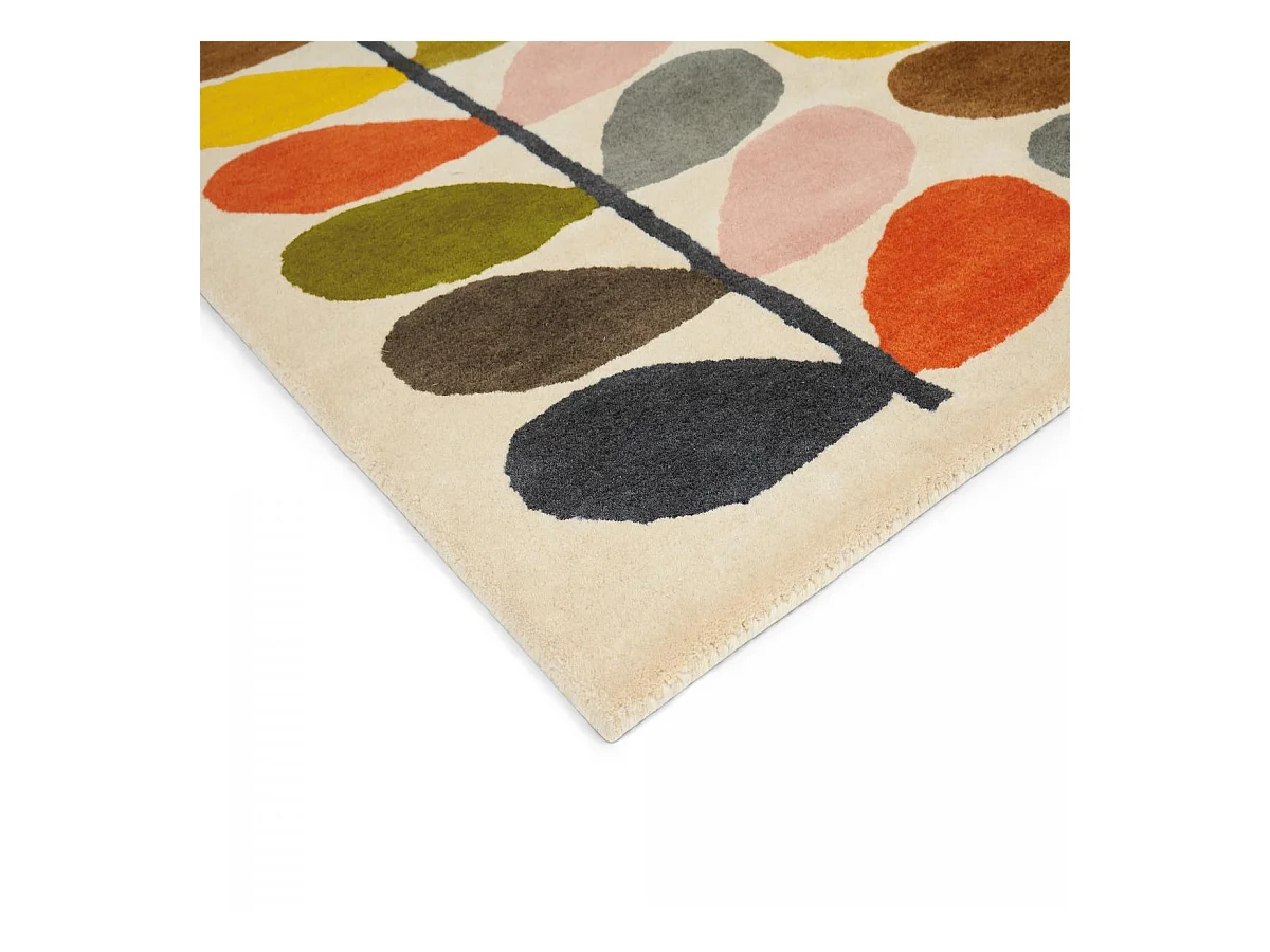 tapis entrée 120x180 fait à la main en laine crème et orange motif seventies