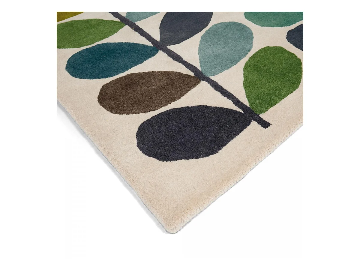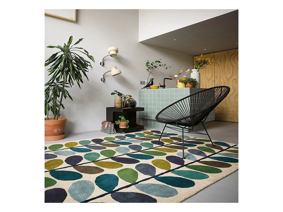 tapis chambre 160x230 fait à la main en laine crème et vert motif seventies