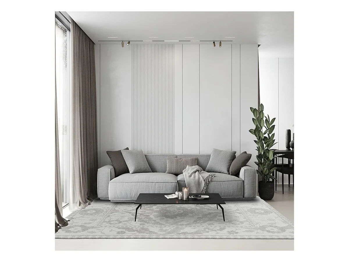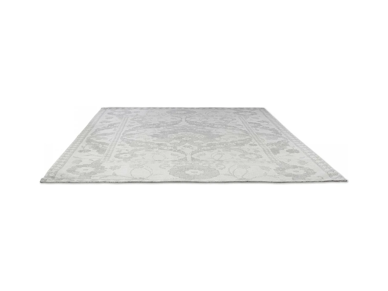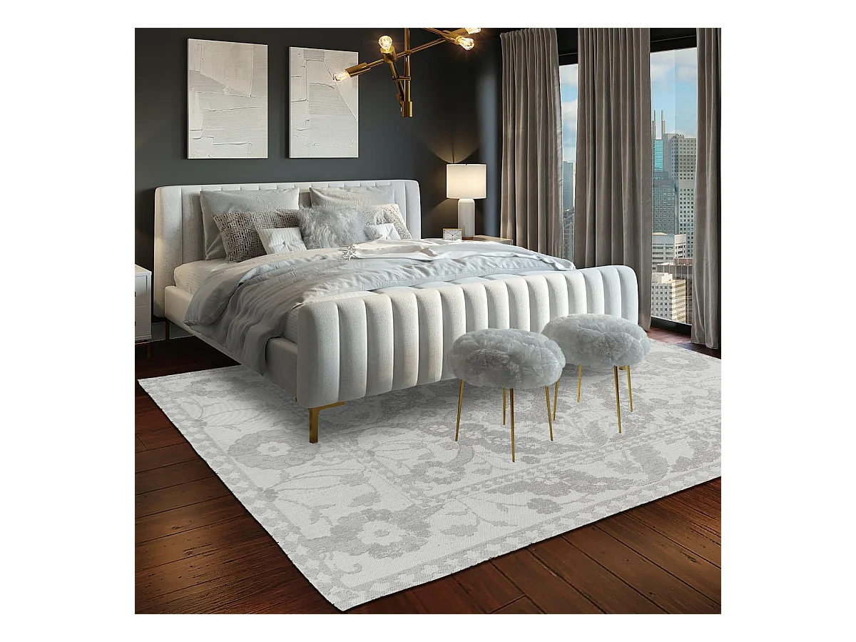 tapis chambre 140x200 fait main en coton gris acier rectangle motif floral NEWBOR