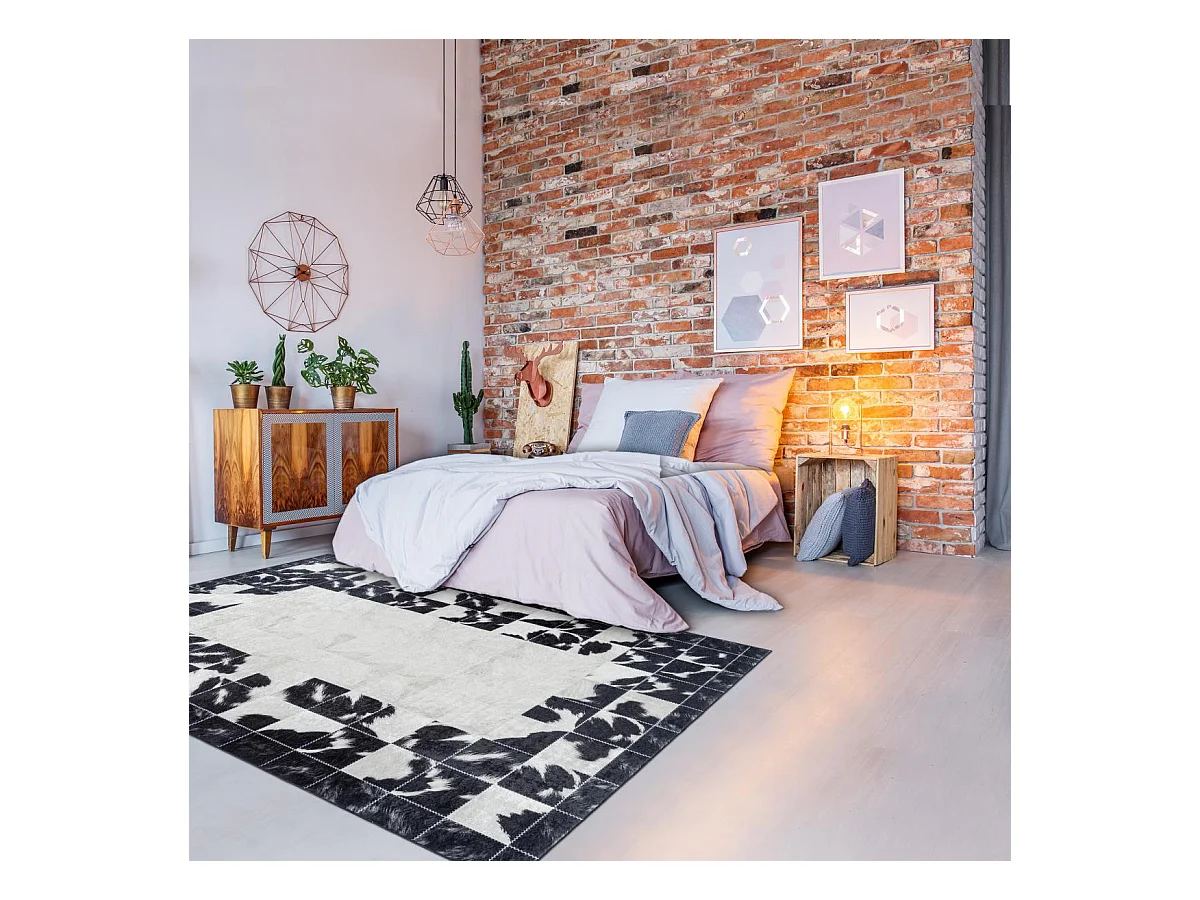 tapis salon 155x190 tissé noir et blanc rectangle motif animaux MARBEL 3