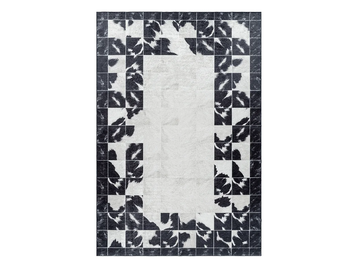 tapis salon 155x190 tissé noir et blanc rectangle motif animaux MARBEL 3