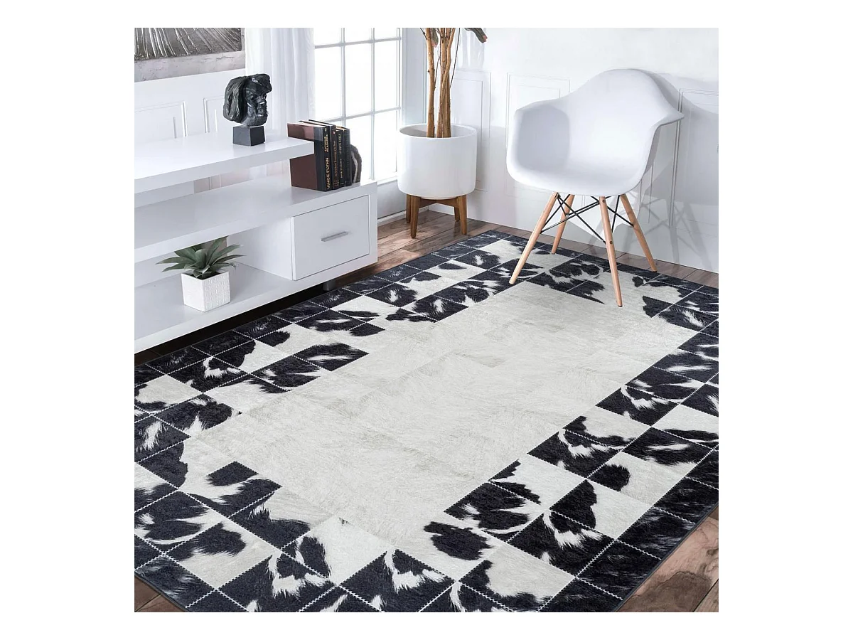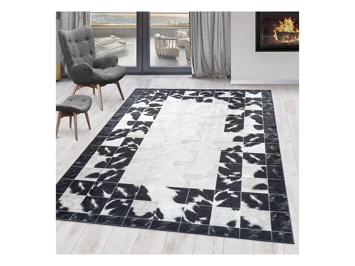 tapis salon 155x190 tissé noir et blanc rectangle motif animaux MARBEL 3