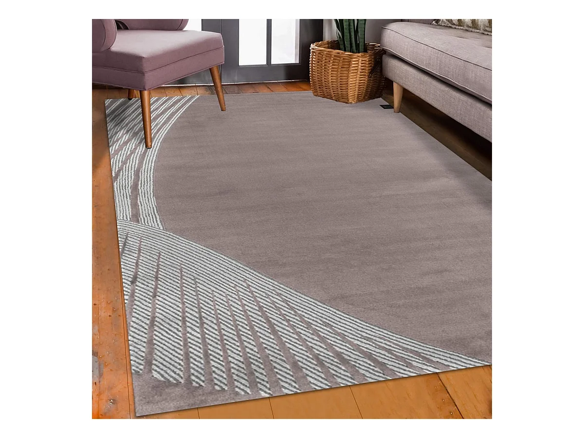 tapis salon 190x290 tissé rose et gris rectangle motif géométrique OBEROI