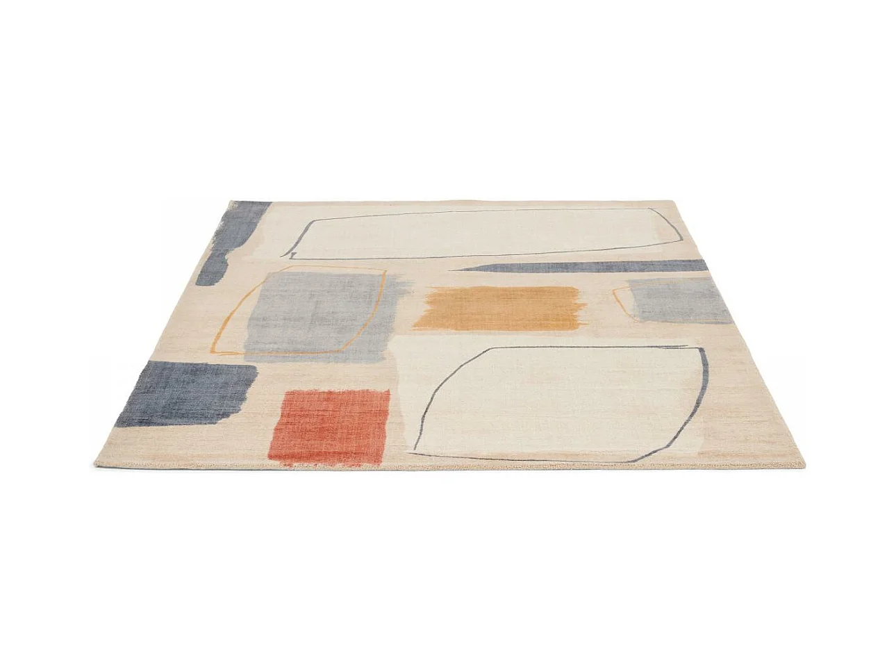 tapis entrée 120x180 fait à la main en laine beige et bleu motif abstrait
