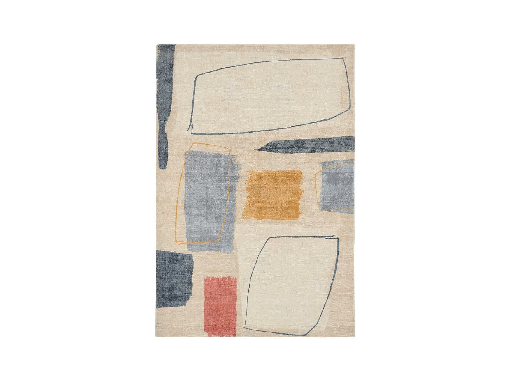 tapis chambre 160x230 fait à la main en laine beige et bleu motif abstrait