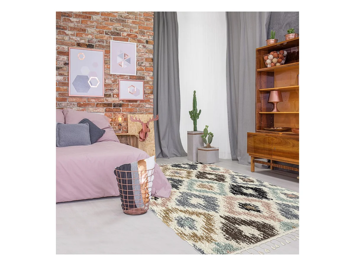 tapis salon 120x170 tissé multicolore rectangle motif géométrique LYN6 CARI