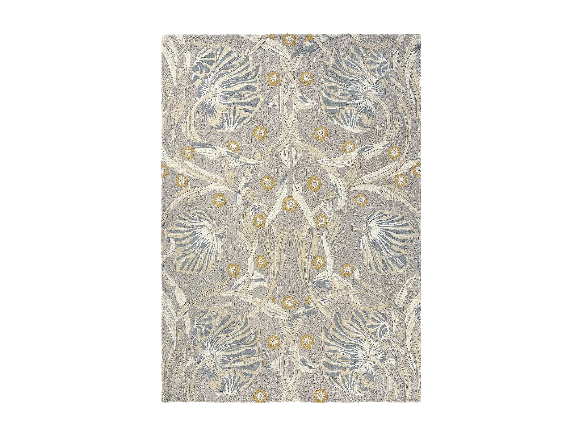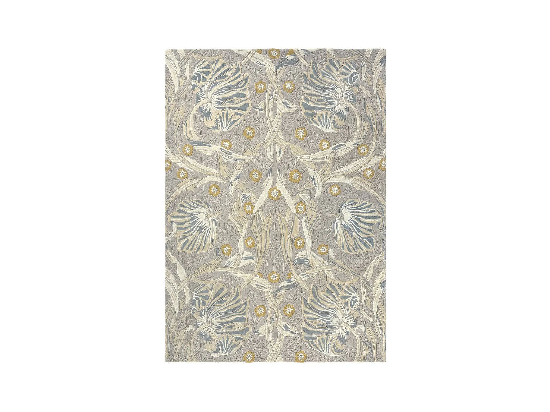 tapis entrée 140x200 fait à la main en laine gris clair motif floral