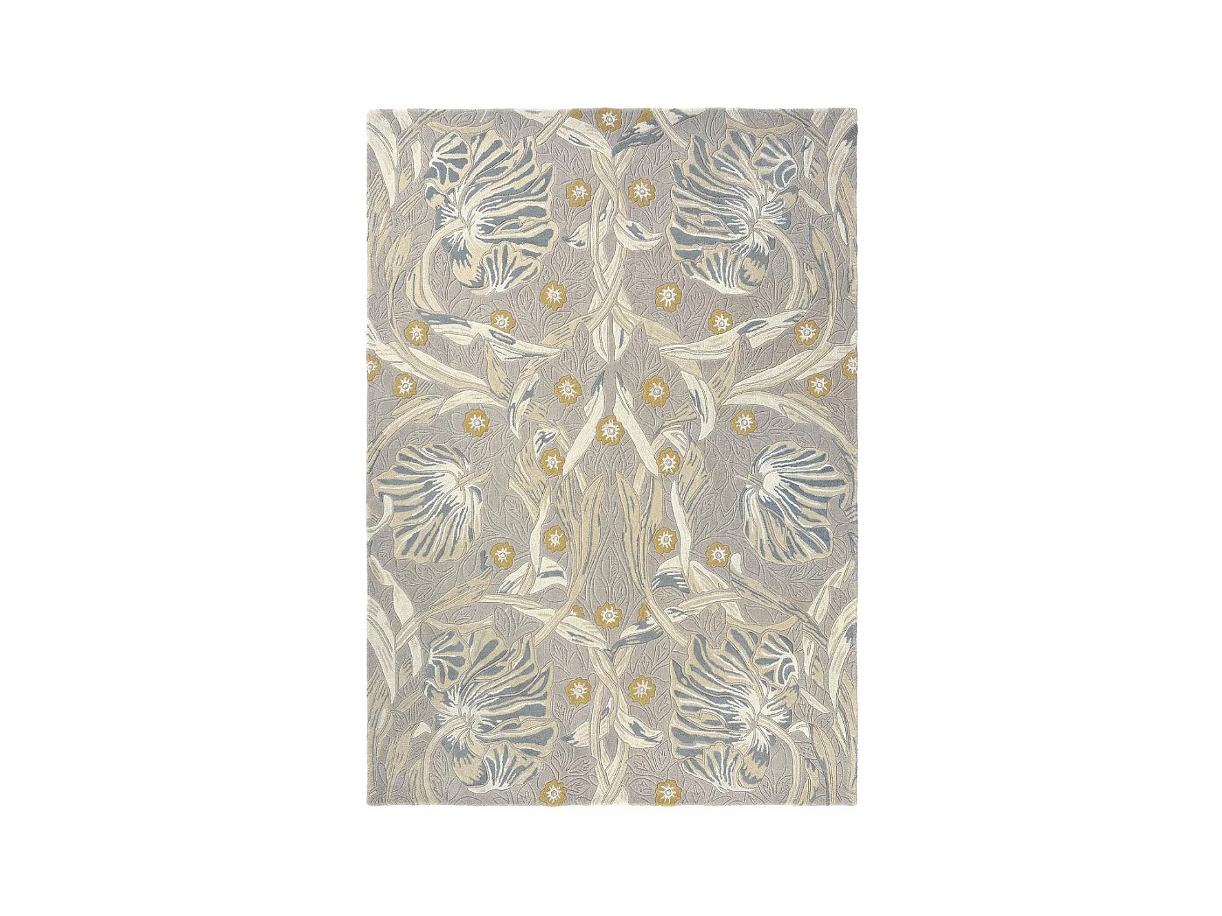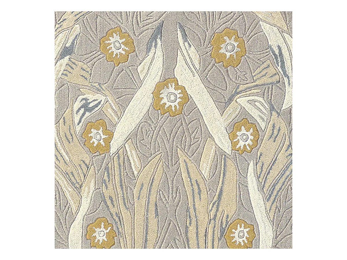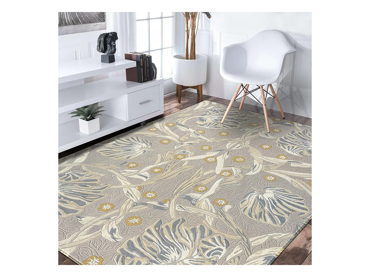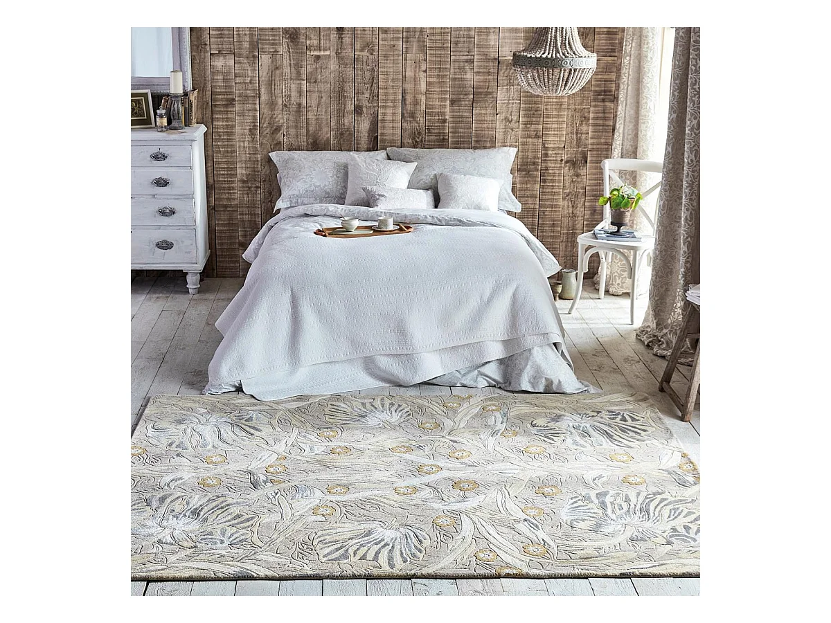 tapis chambre 170x240 fait à la main en laine gris clair motif floral