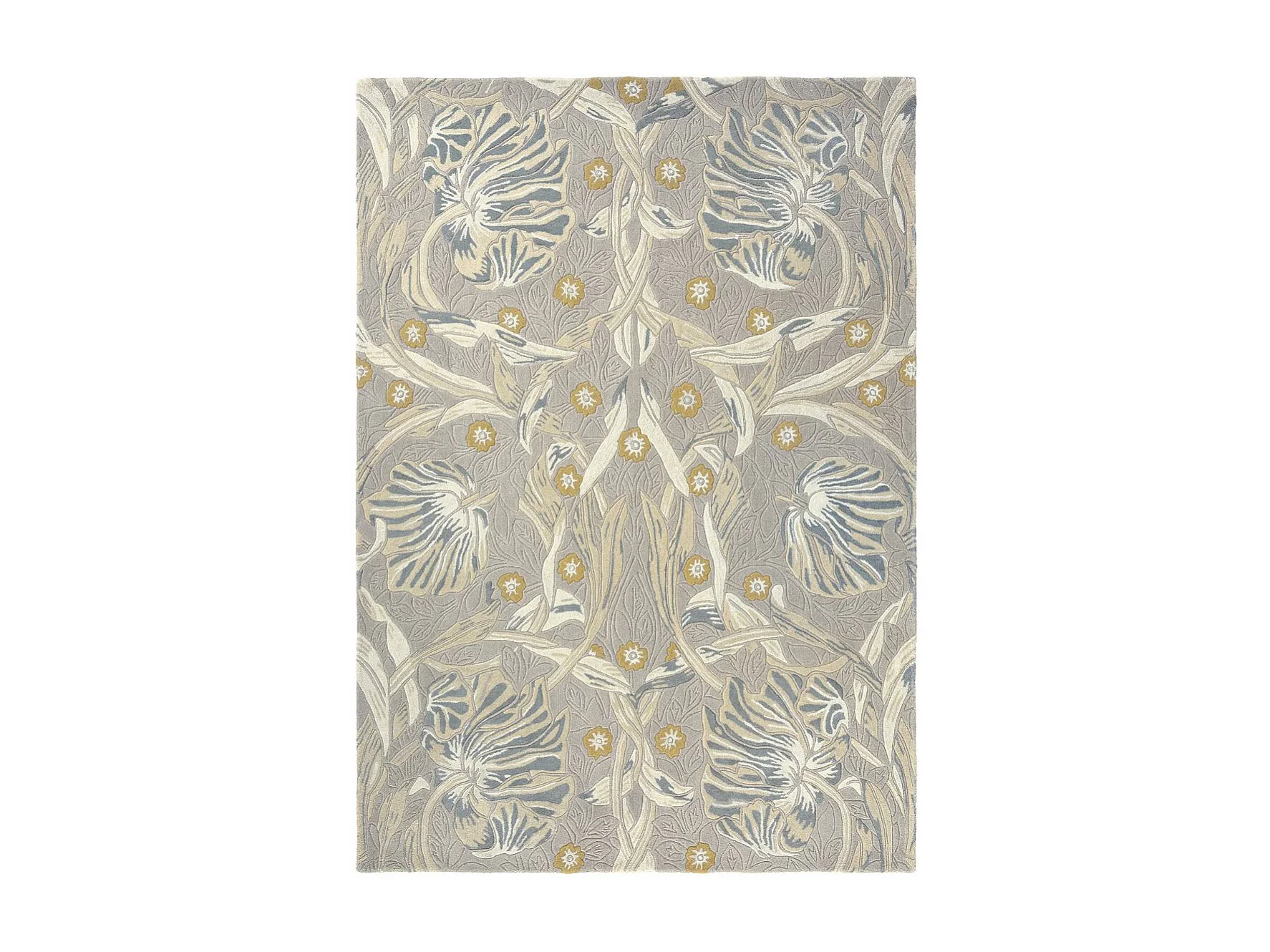 tapis salle à manger 250x350 fait à la main en laine gris clair motif floral