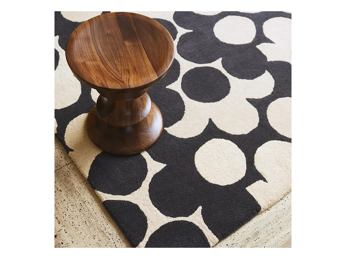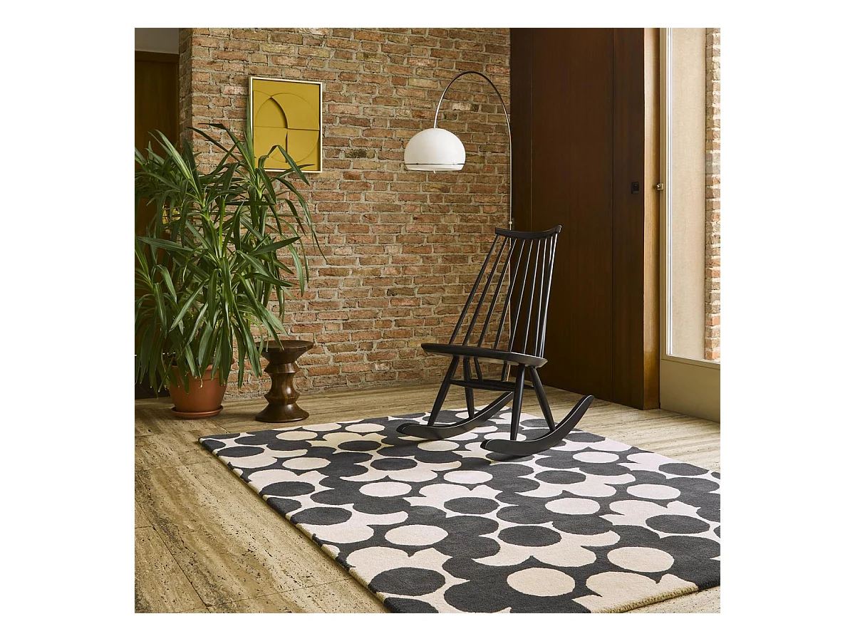 tapis entrée 120x180 fait à la main en laine crème et noir motif seventies