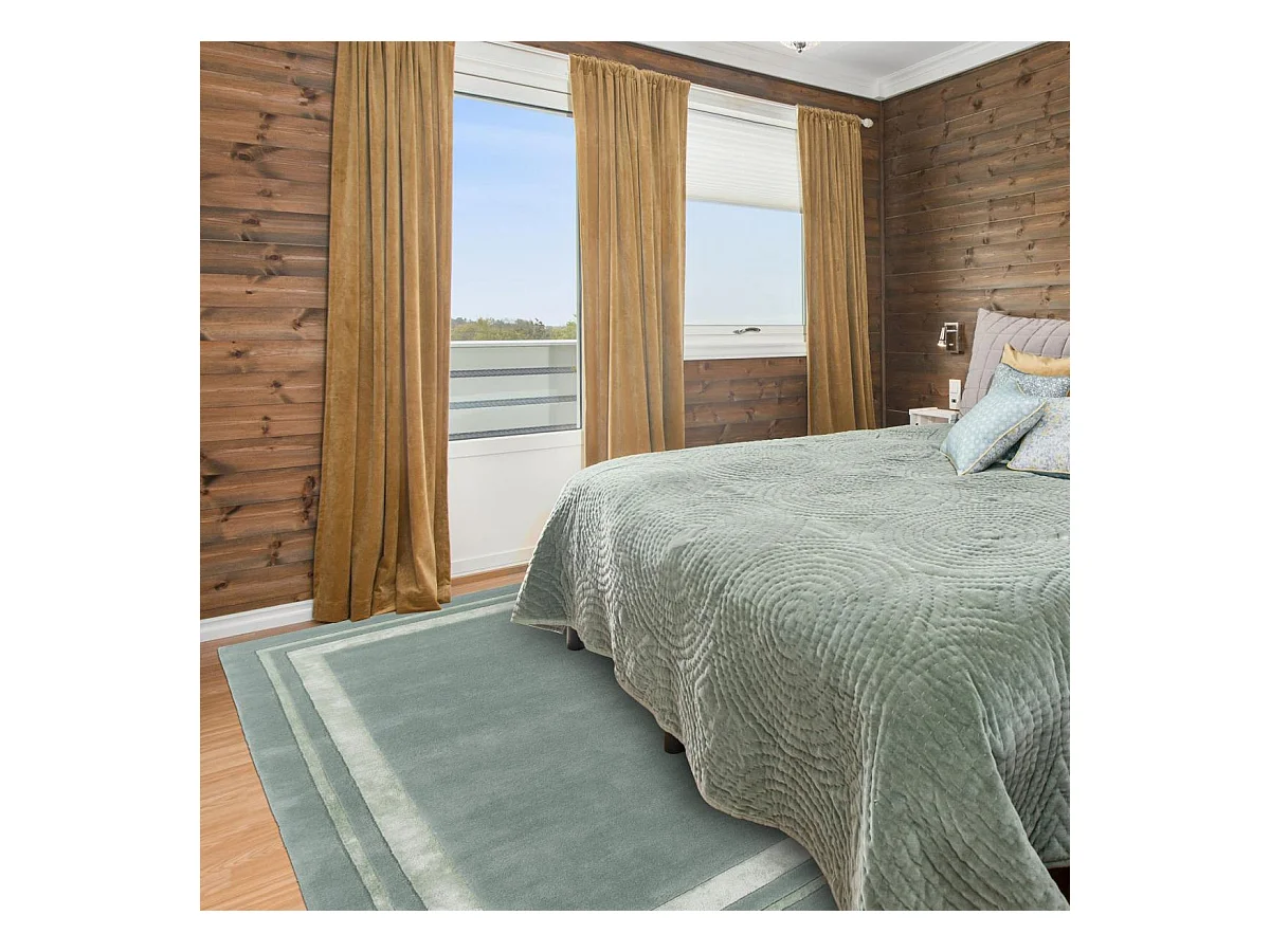 tapis salle à manger 170x240 fait main en laine vert rectangle motif simple