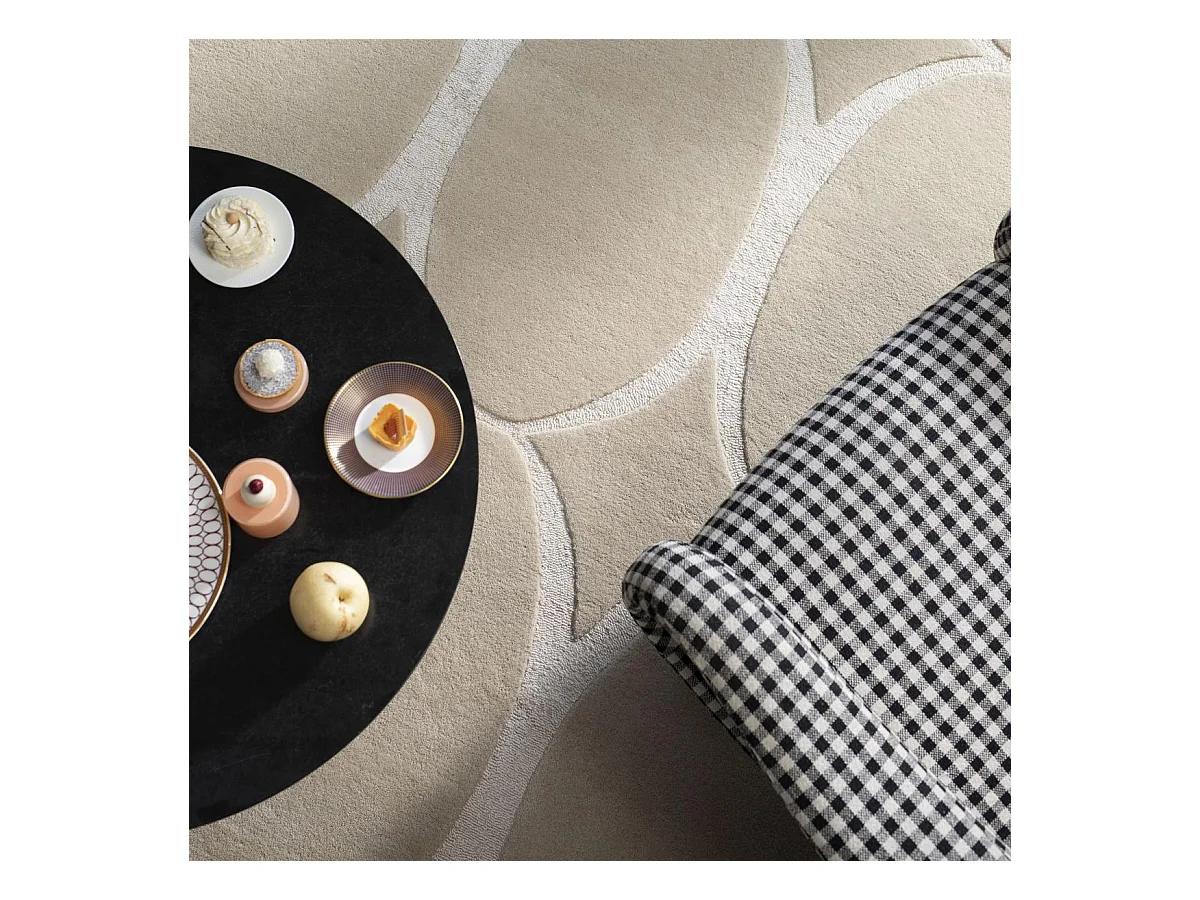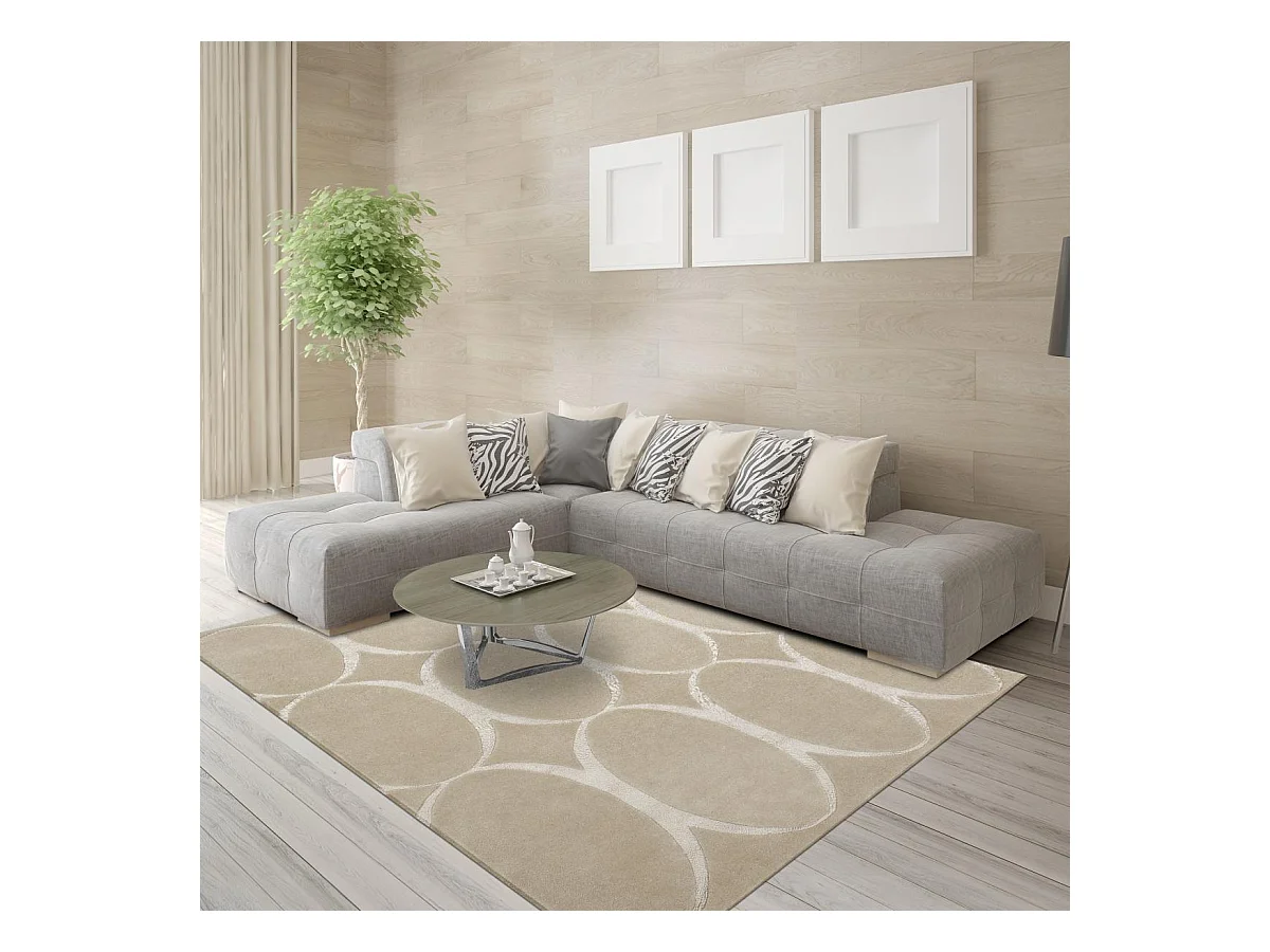 tapis chambre 170x240 fait à la main en laine beige rectangle motif simple RIO