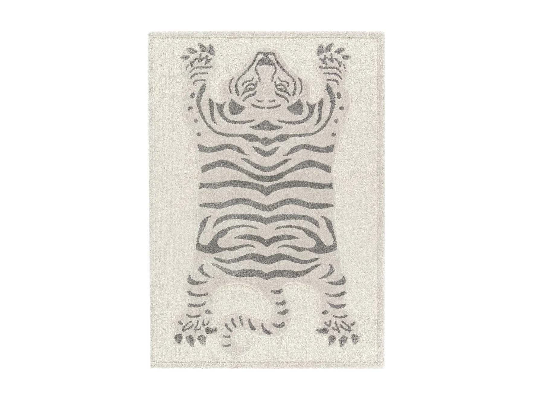 tapis salon 160x230 tissé gris clair et gris foncé rectangle motif animaux