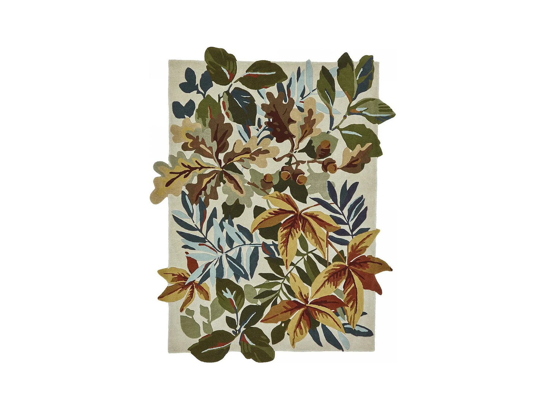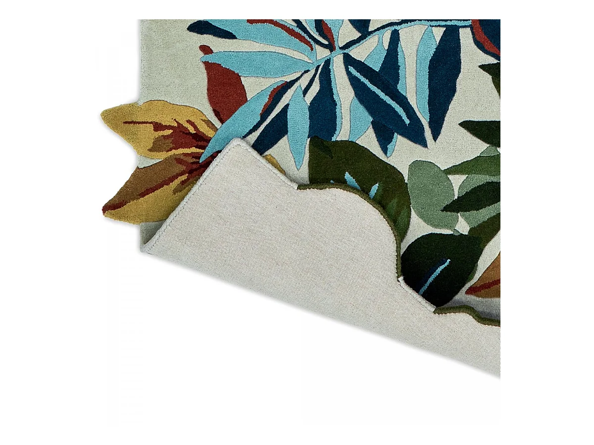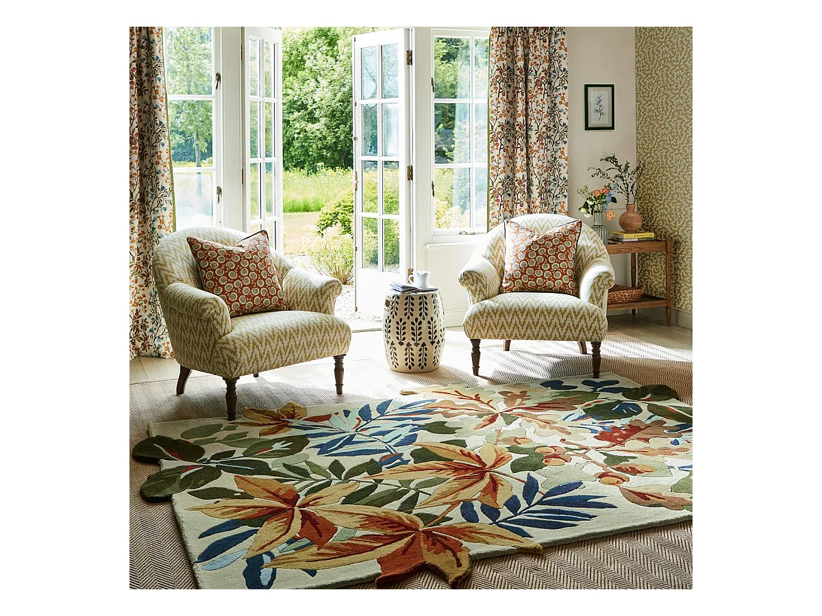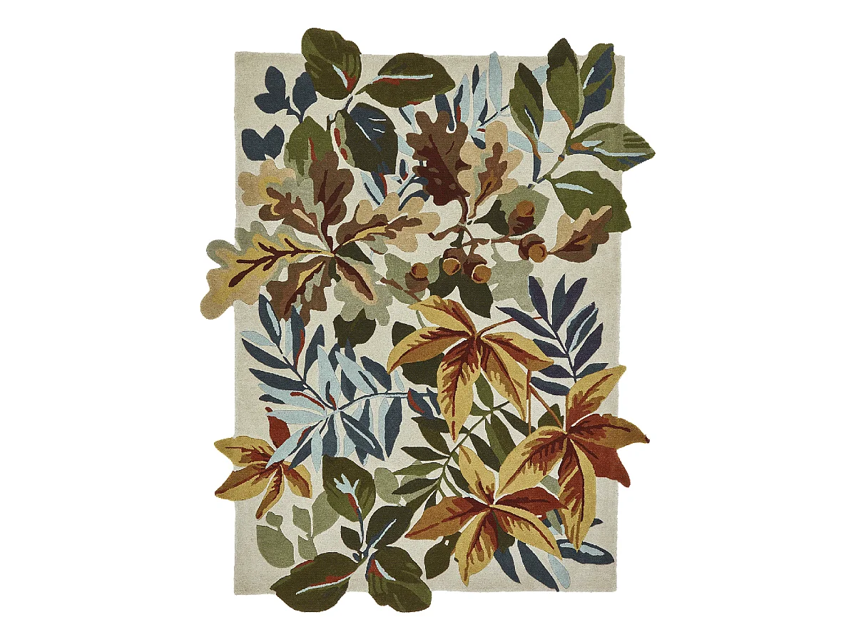 tapis entrée 140x200 fait main en laine orange et beige rectangle motif floral