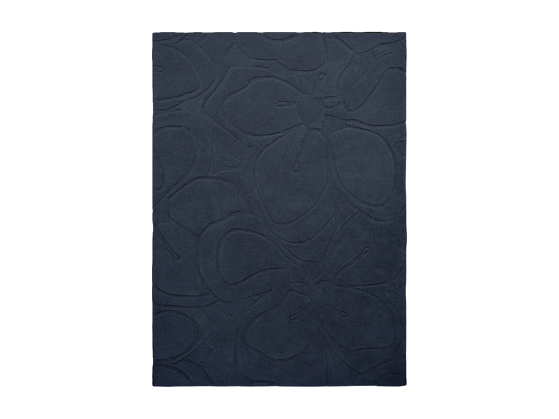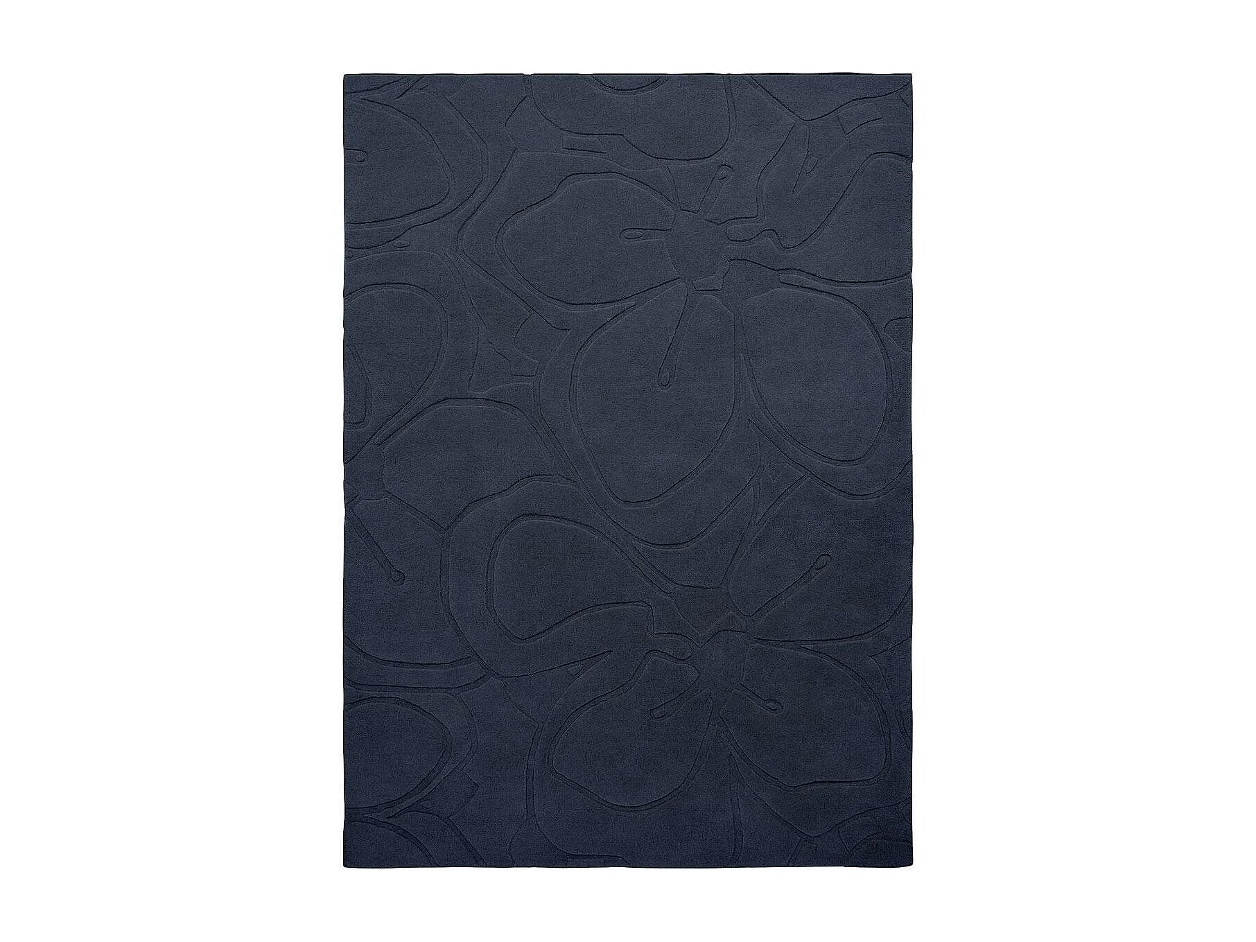 tapis entrée 140x200 fait à la main en laine bleu foncé motif faux uni