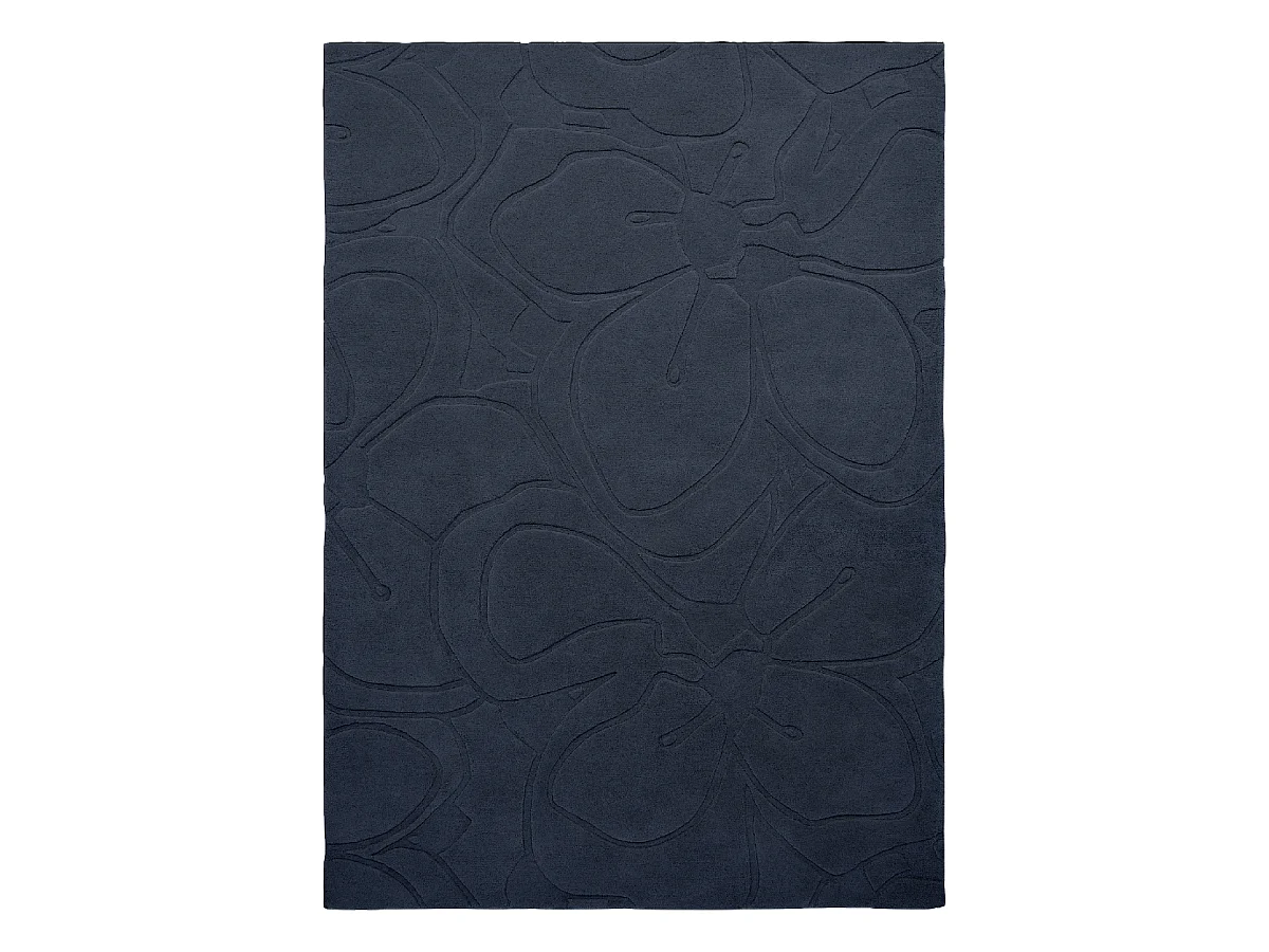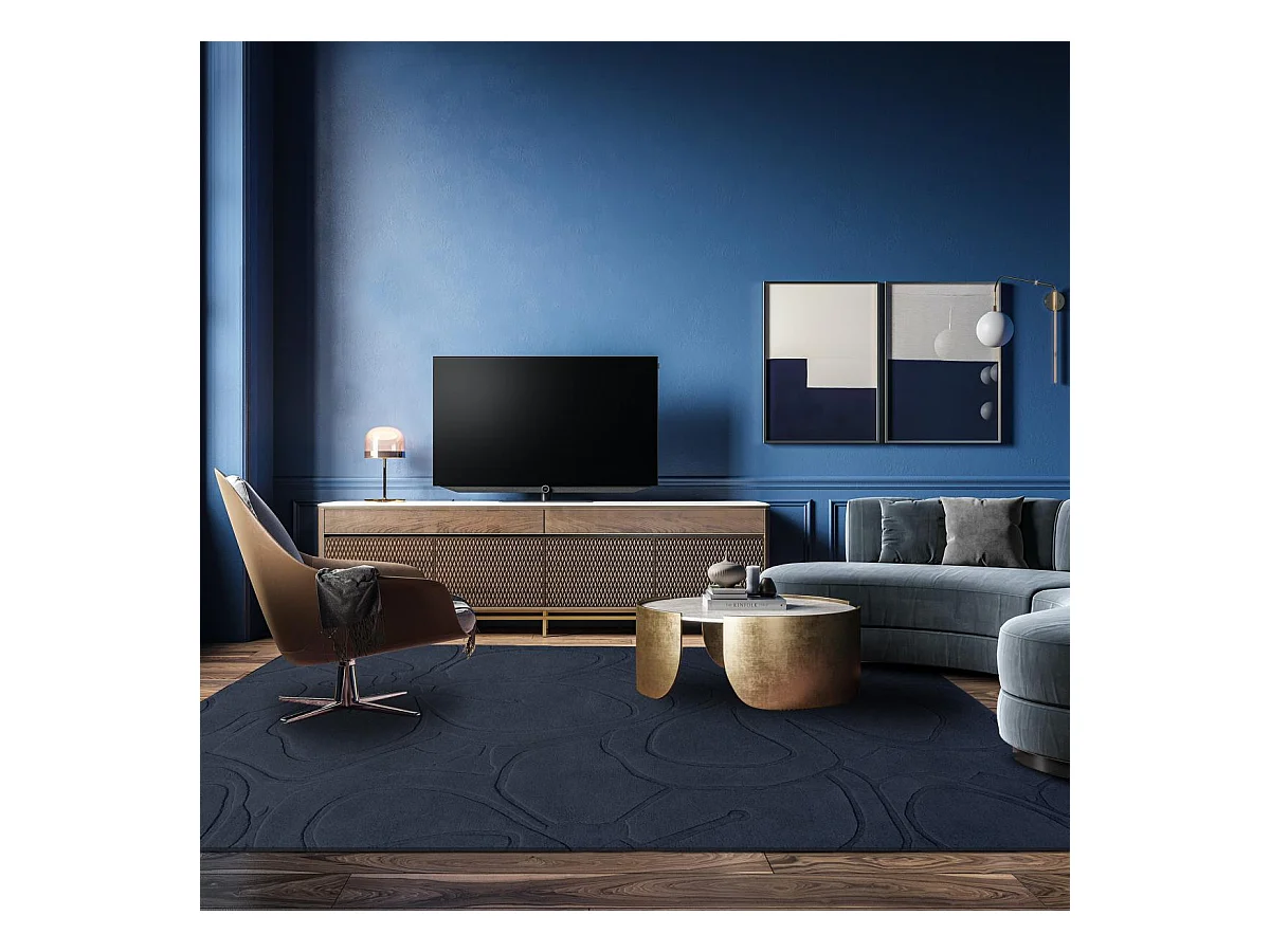tapis chambre 200x280 fait à la main en laine bleu foncé motif faux uni