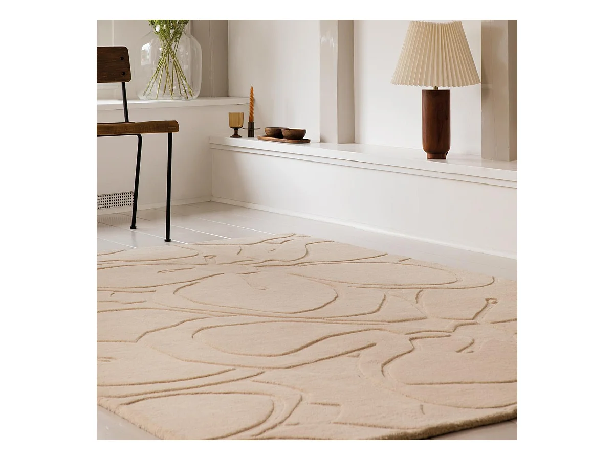 tapis chambre 200x280 fait à la main en laine crème rectangle motif faux uni