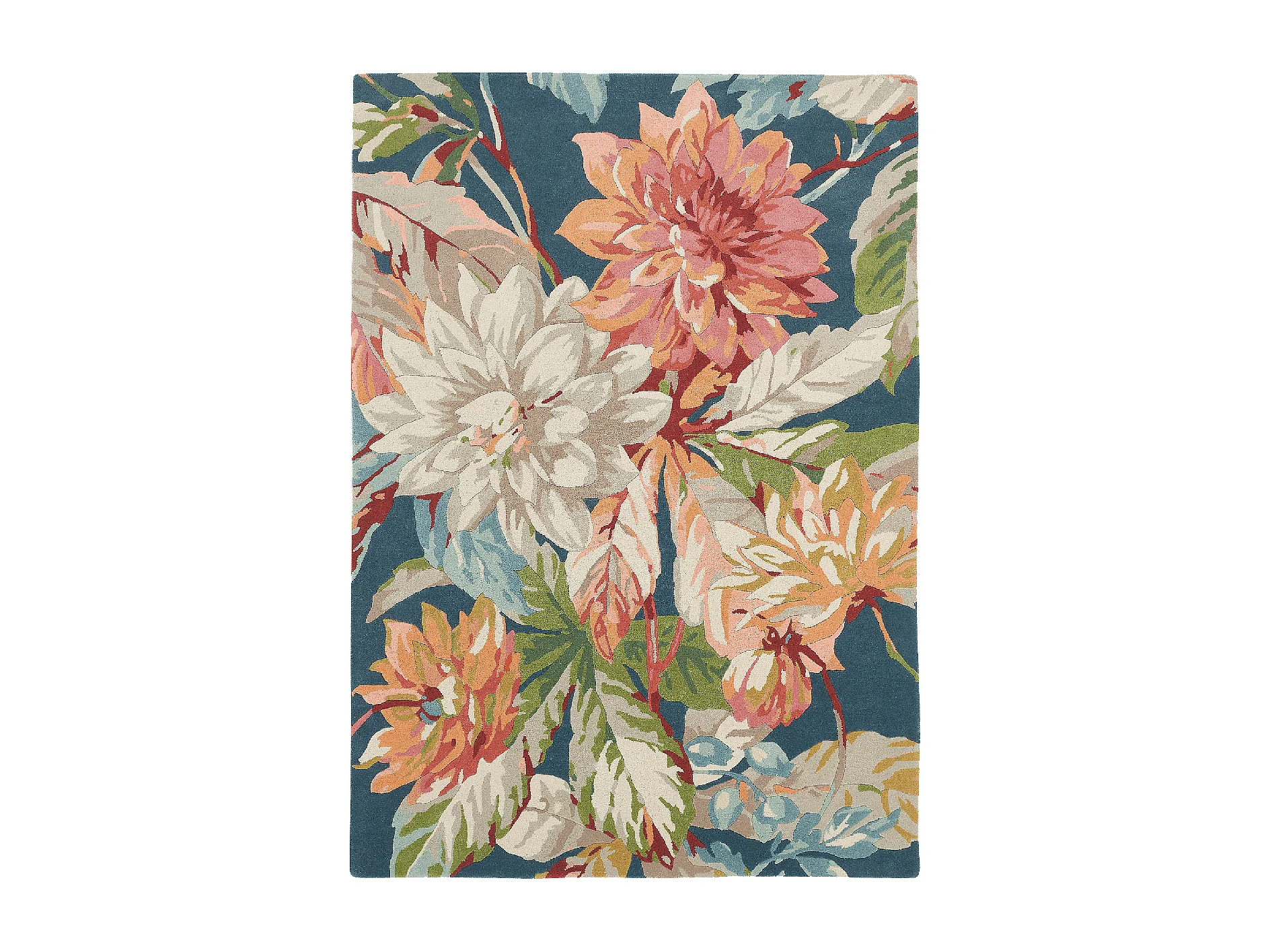tapis entrée 140x200 fait à la main en laine bleu et orange motif floral