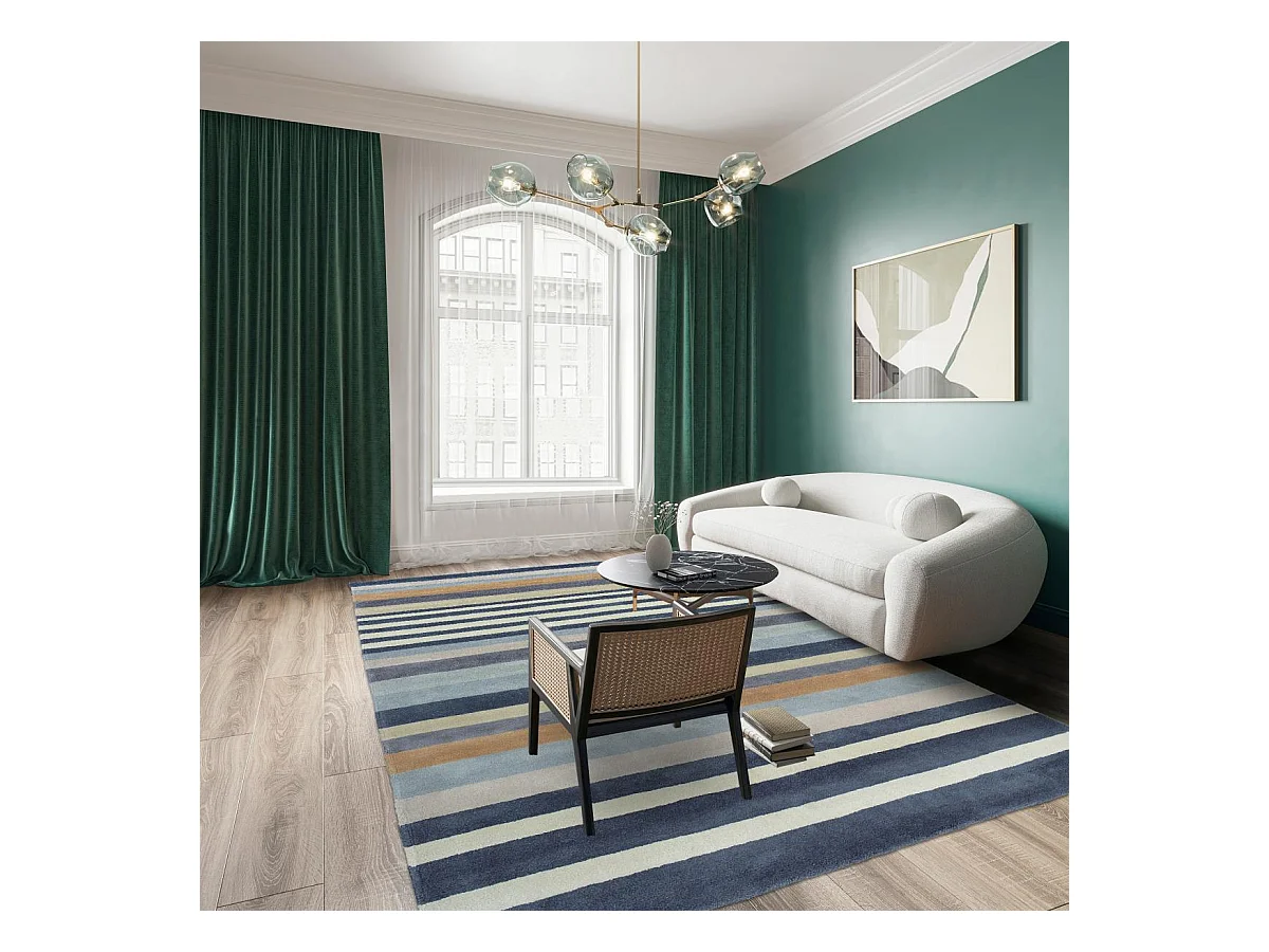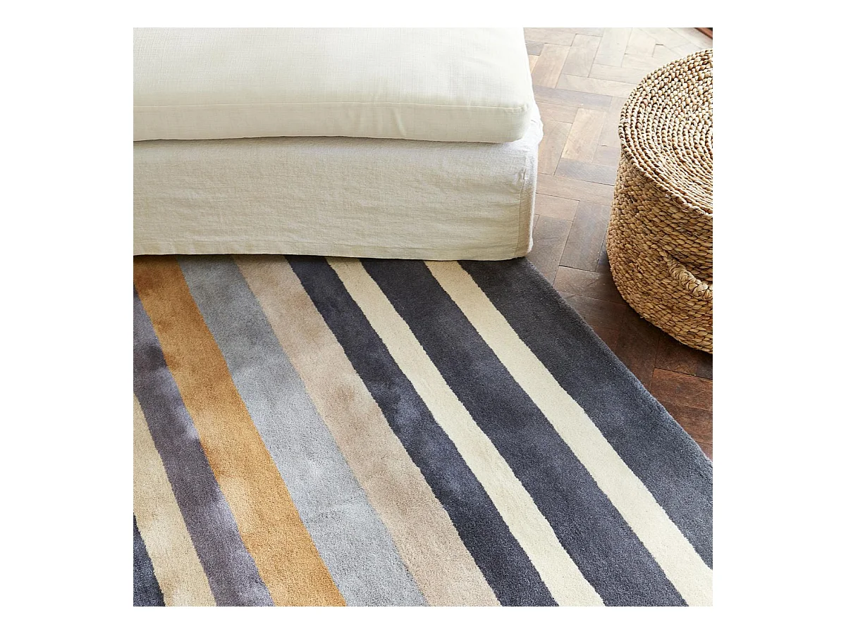 tapis entrée 140x200 fait à la main en laine gris et bleu marine
