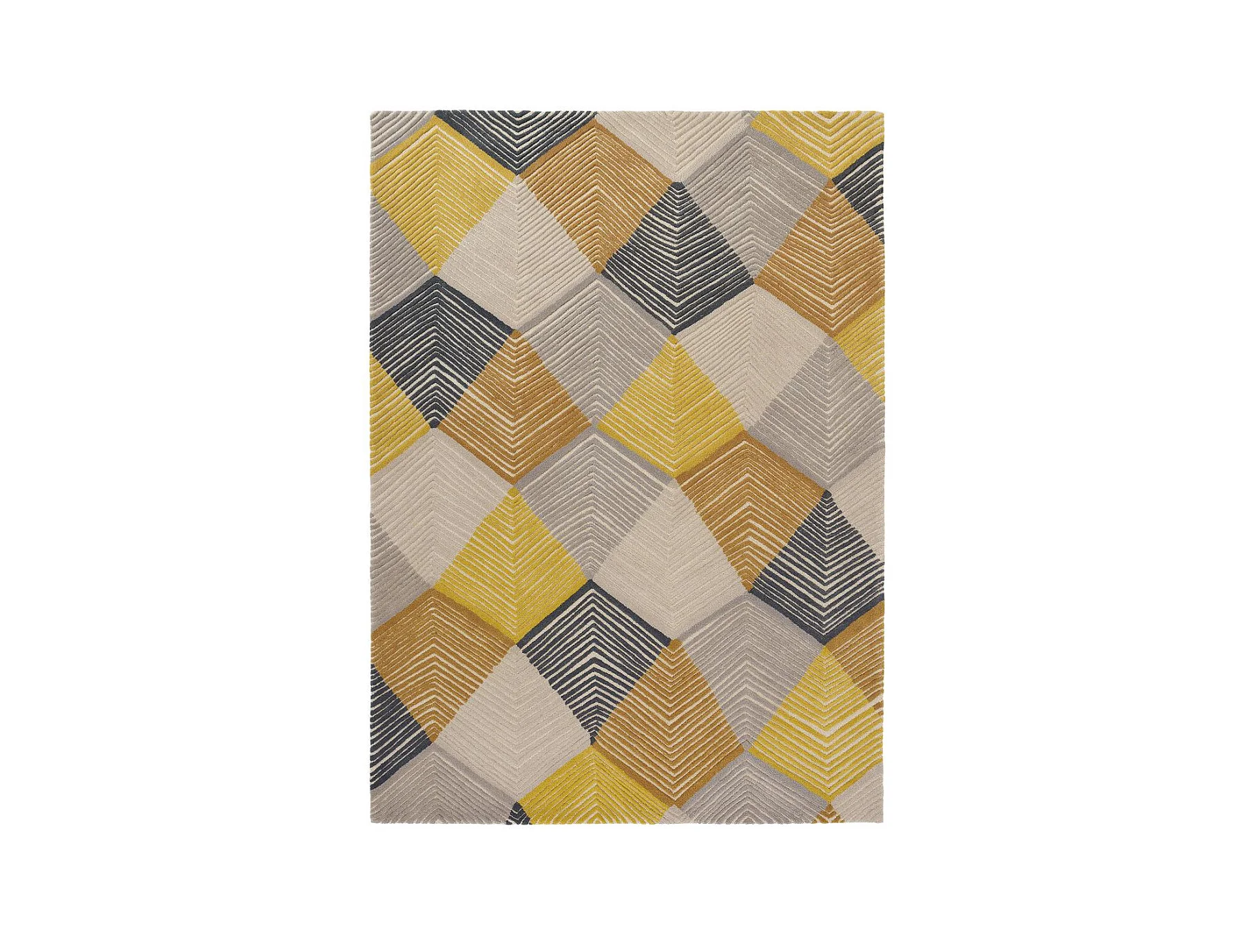 tapis entrée 140x200 fait à la main en laine jaune et gris motif géométrique