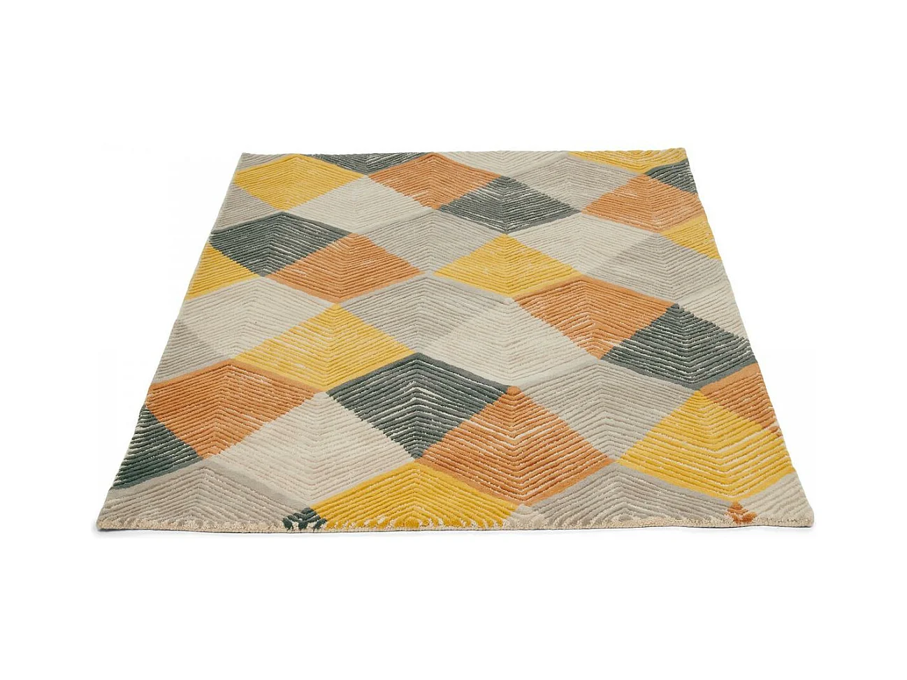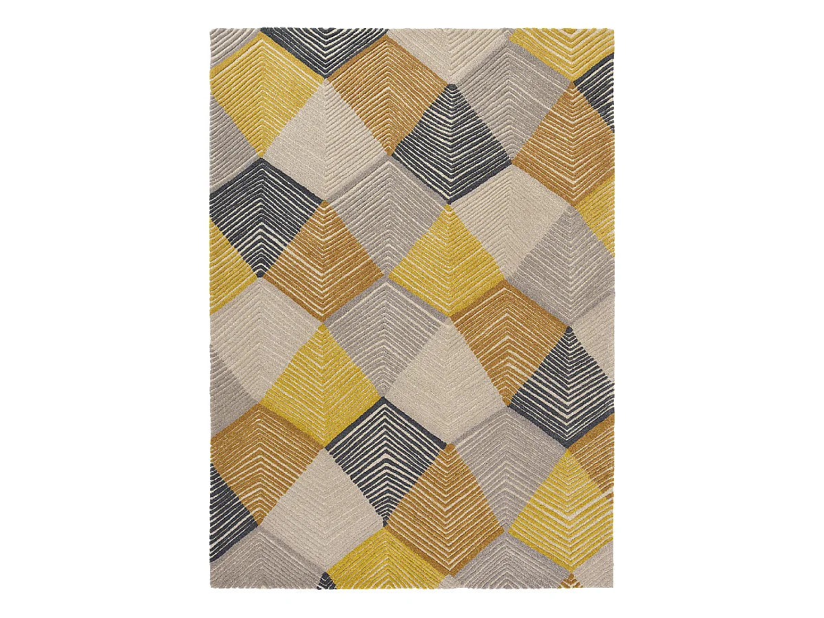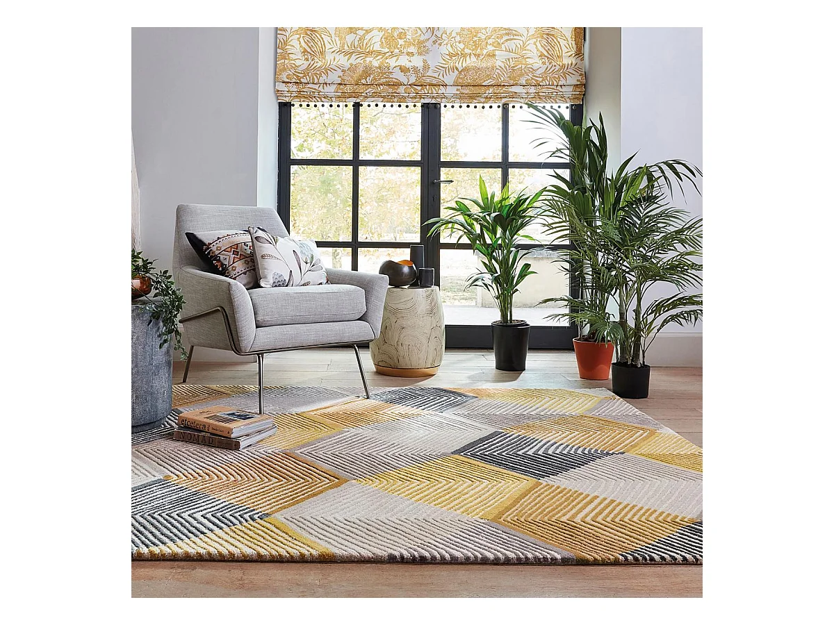 tapis grand salon 250x350 fait à la main en laine jaune et gris