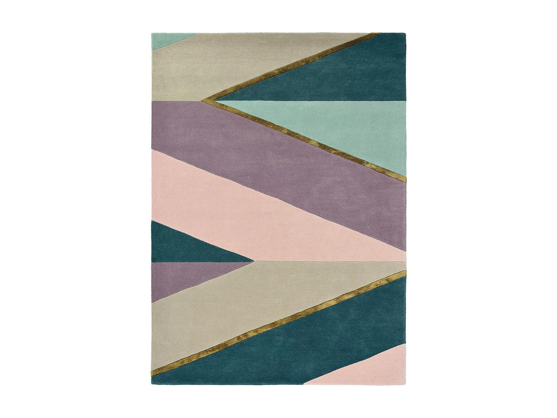 tapis chambre 170x240 fait à la main en laine rose et pourpre motif géométrique