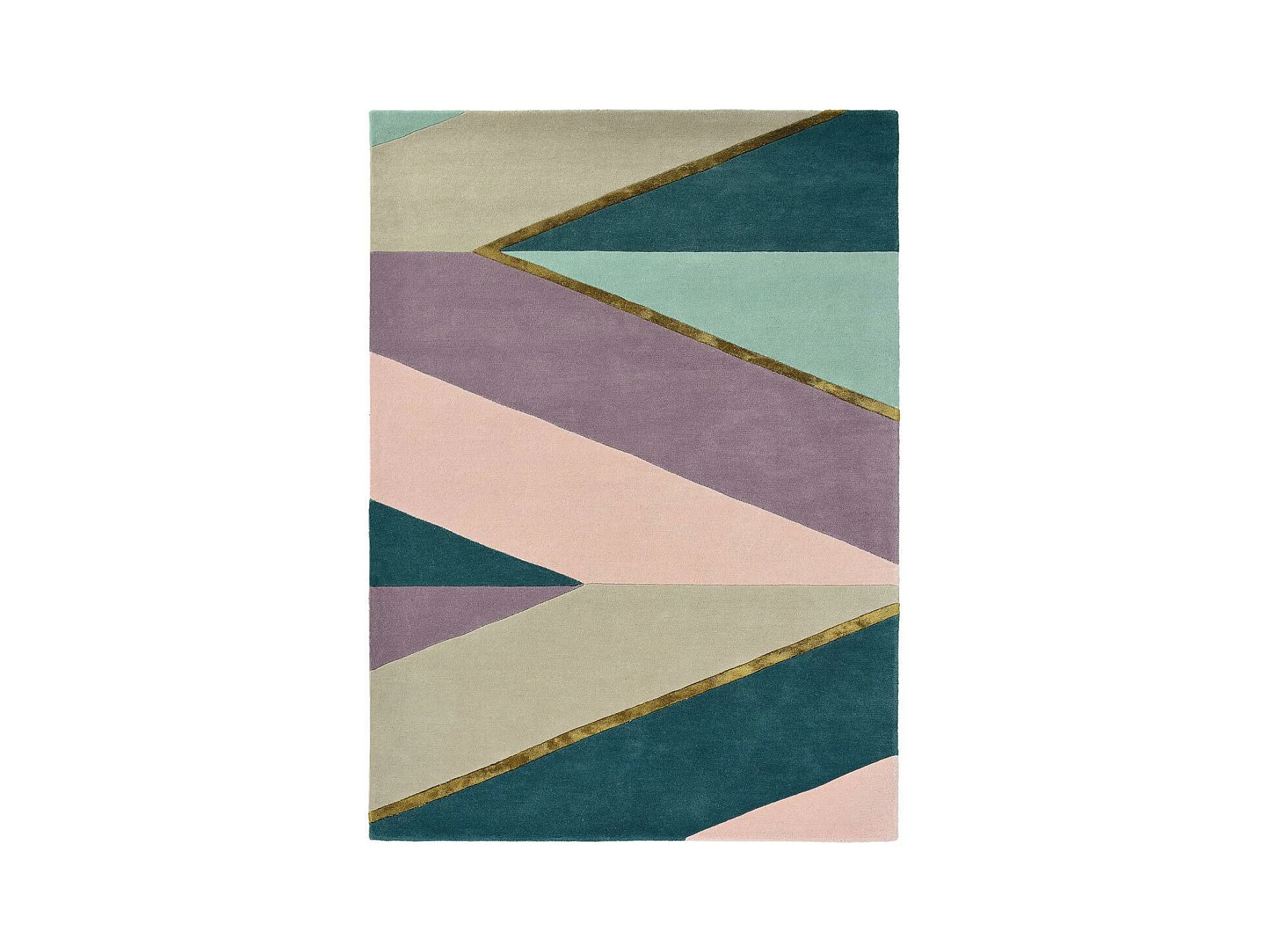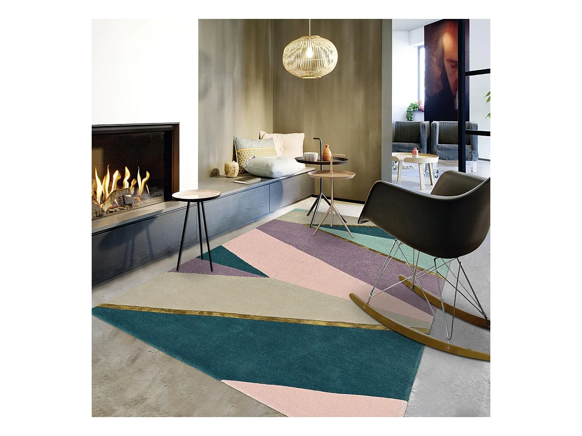 tapis salon 200x280 fait à la main en laine rose et pourpre motif géométrique