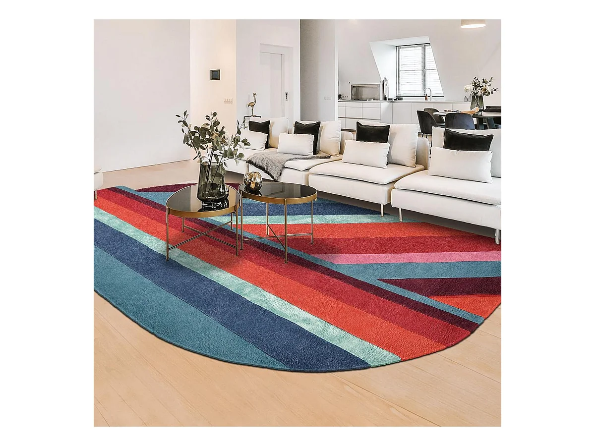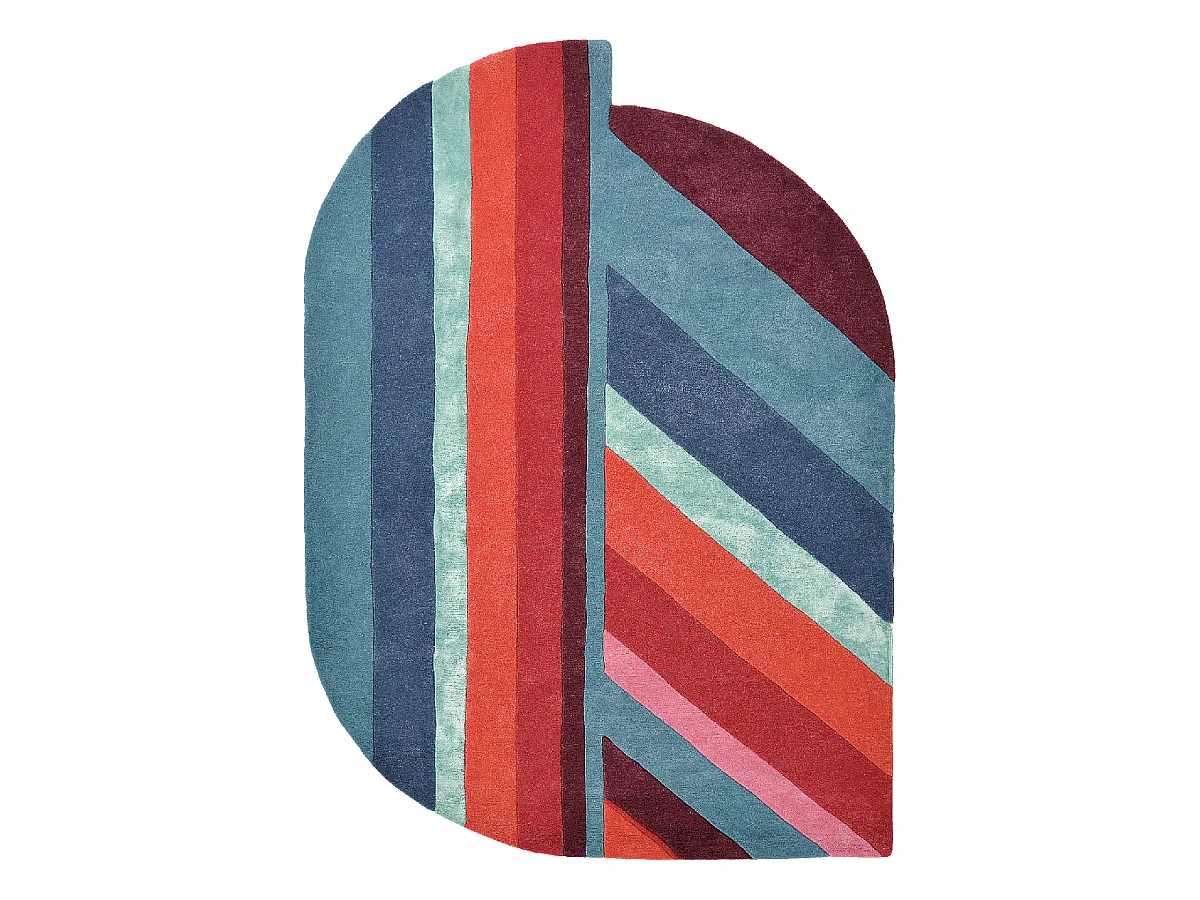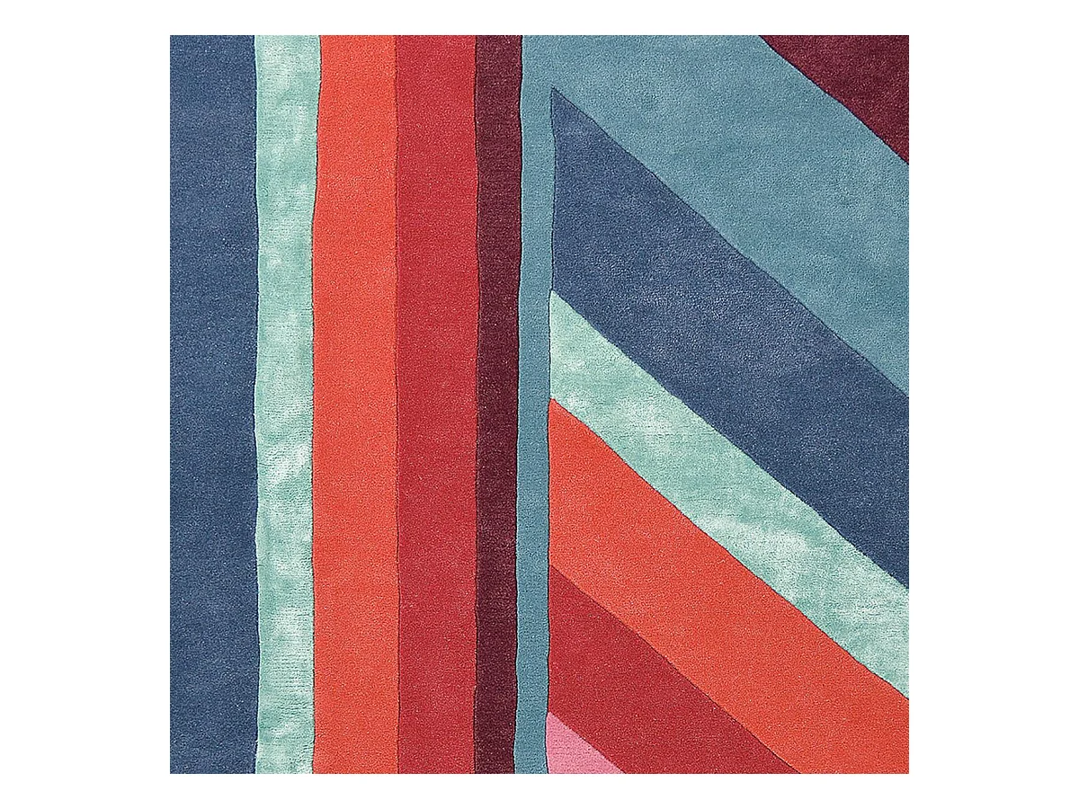 tapis entrée 140x200 fait à la main en laine bleu et rouge