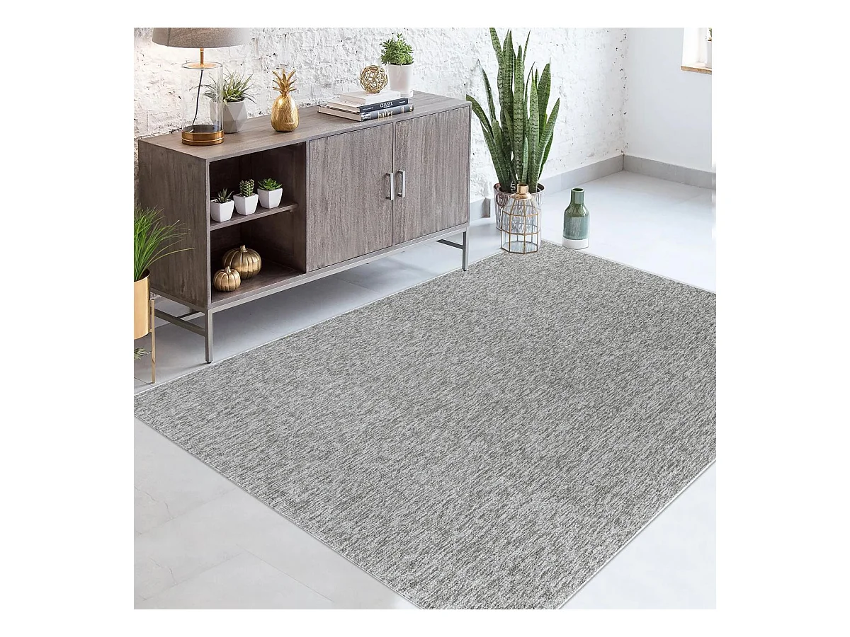 tapis salle à manger 240x340 tissé gris clair rectangle motif uni SOULA