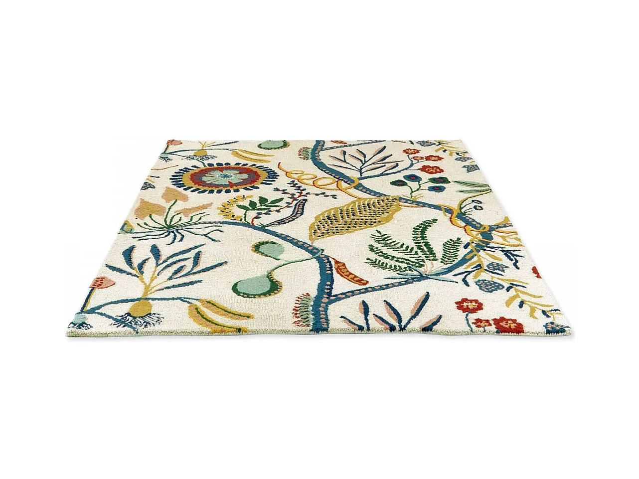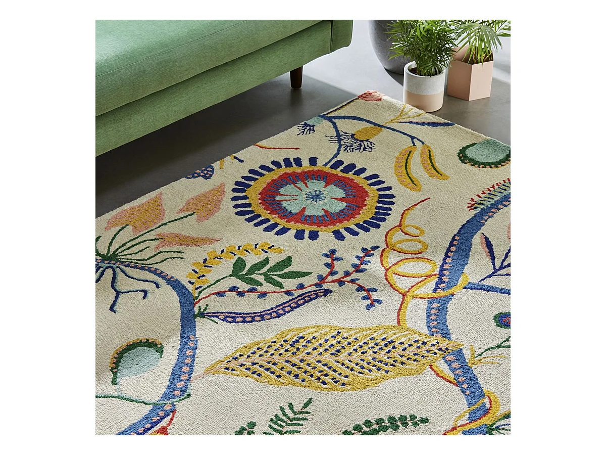 tapis chambre 200x280 fait à la main en laine multicolore rectangle motif floral
